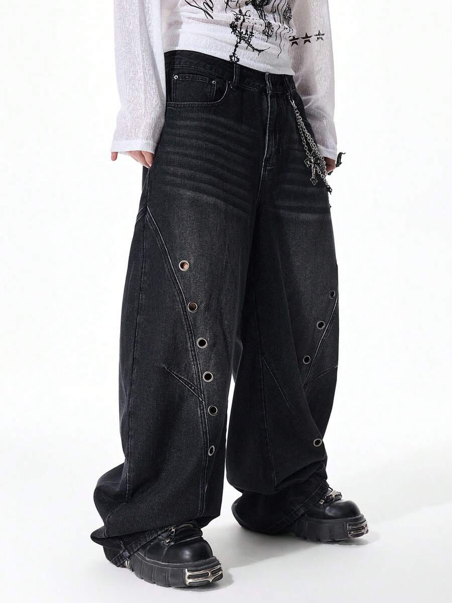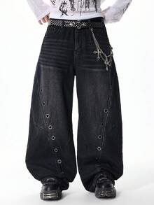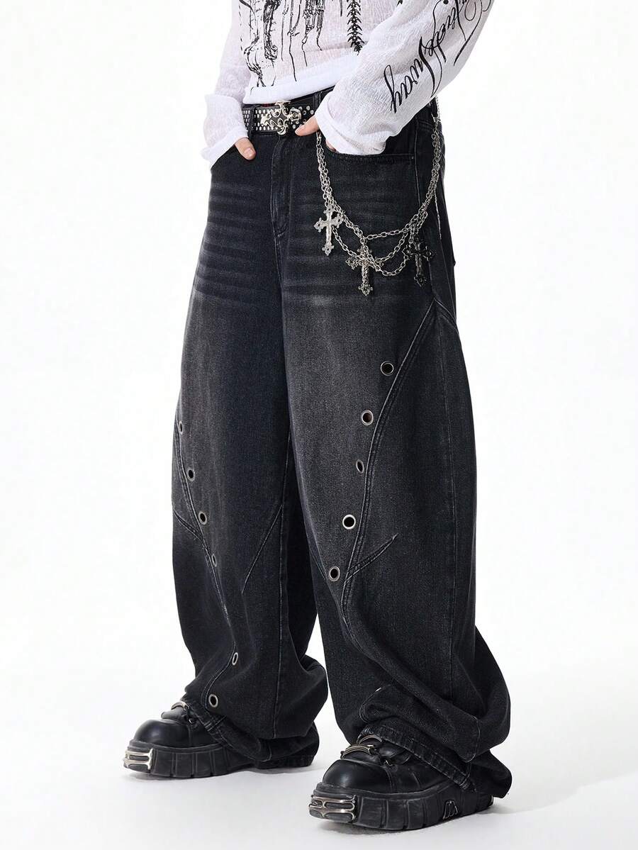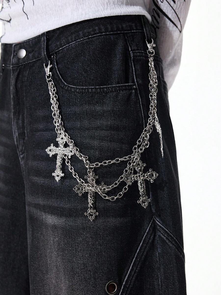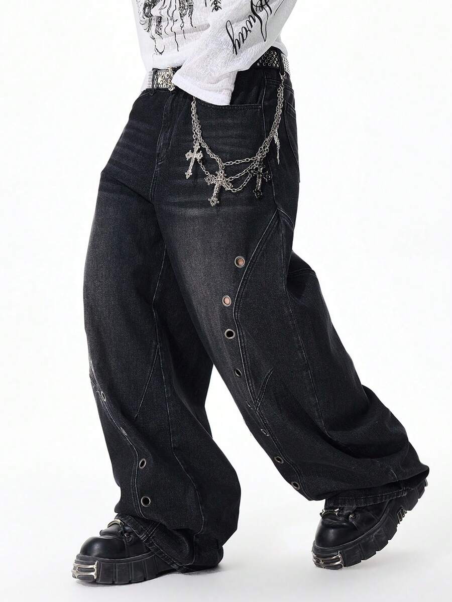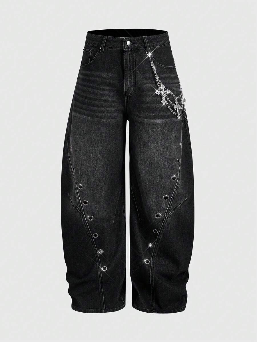 Street Life Jeans para hombre con cadena decorativa y cuchillo curvo