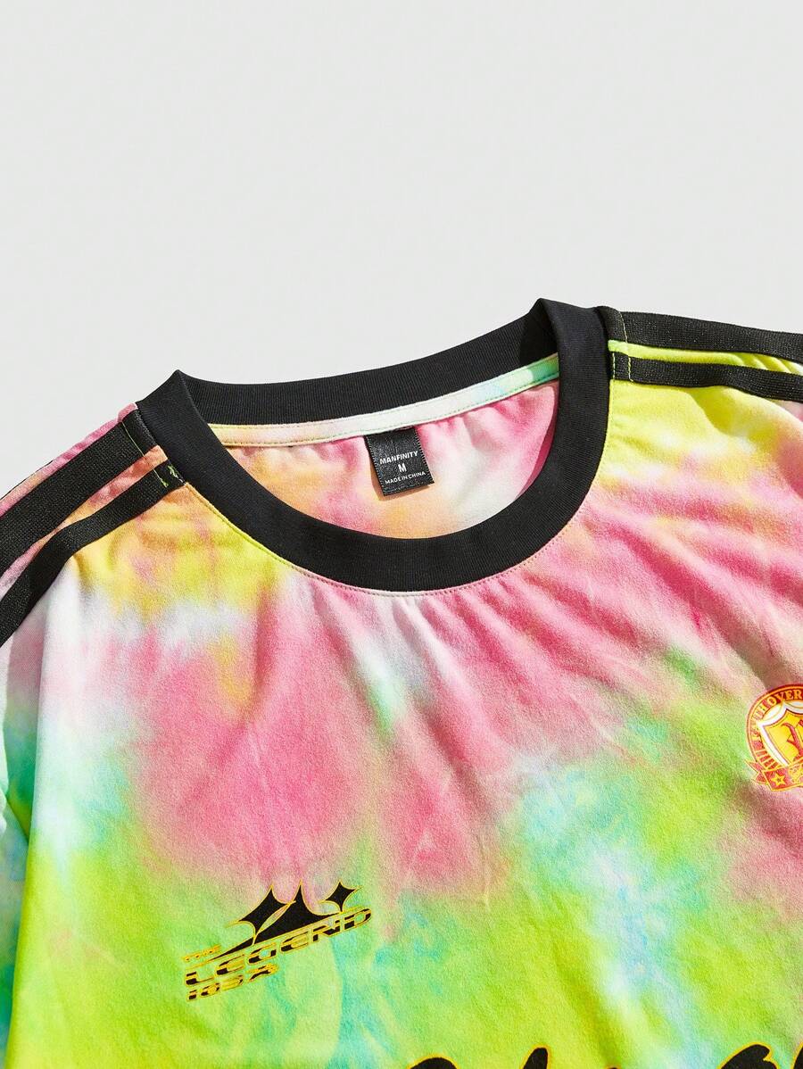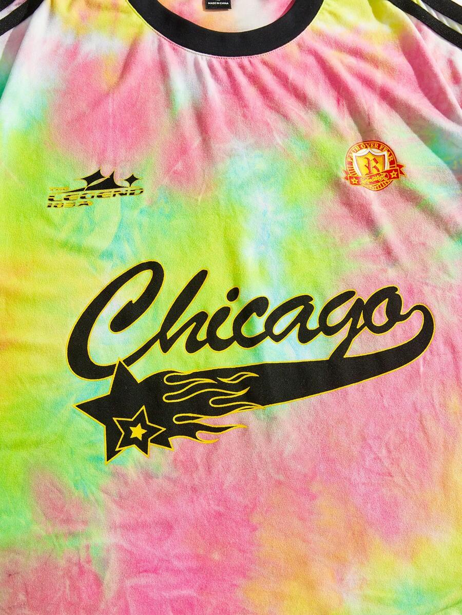 Street Life Camiseta de manga corta de cuello redondo con estampado de letras y efecto tie-dye para hombre, verano
