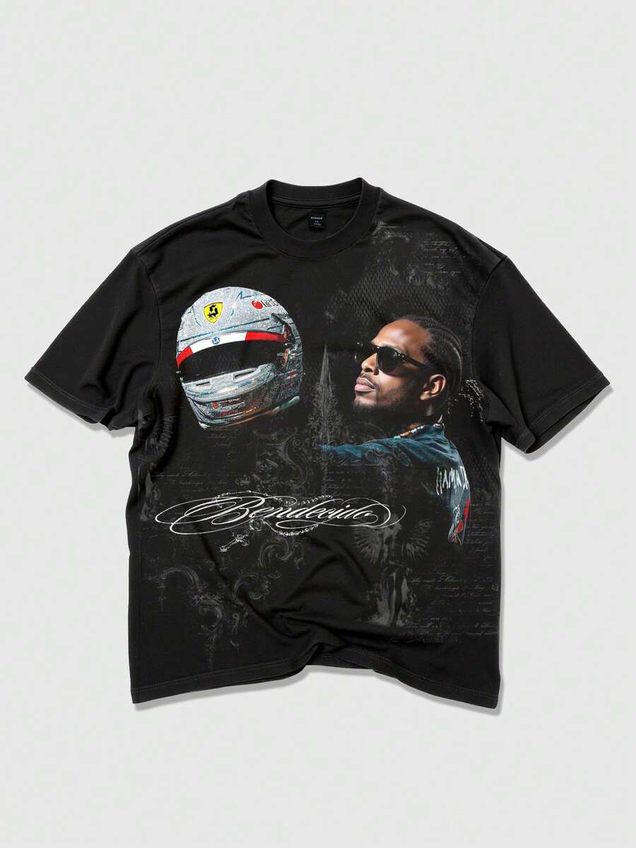Street Life Camiseta casual holgada de cuello redondo con estampado de letras y números para hombre