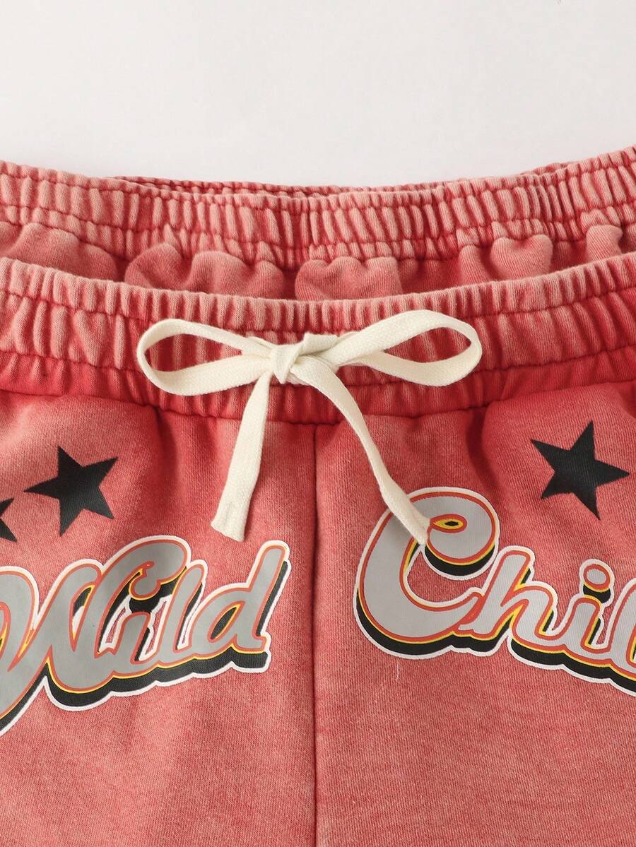 Street Life Pantalones cortos casuales de hombre con estampado de letras y llamas, doble capa y desgastados en la cintura
