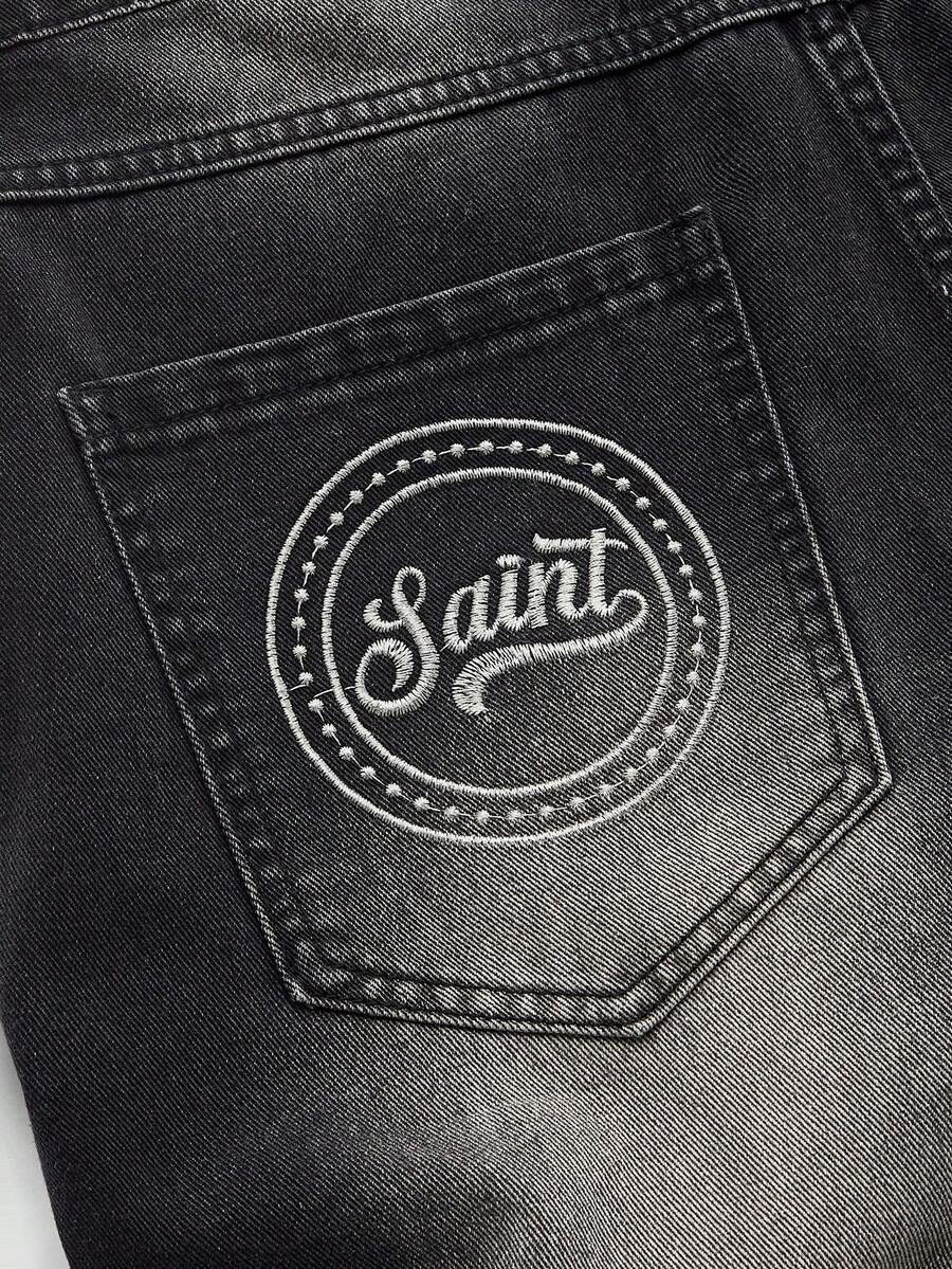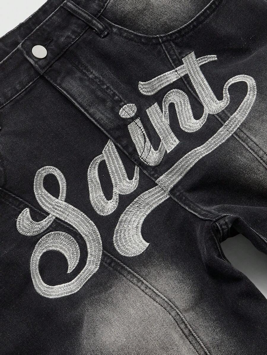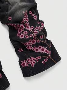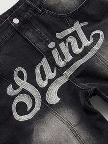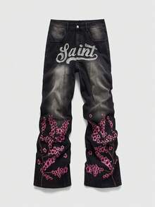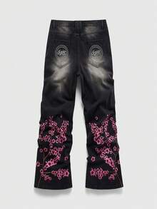 Street Life Jeans casuales con pliegues, bordados con letras y flores en el bolsillo para hombres