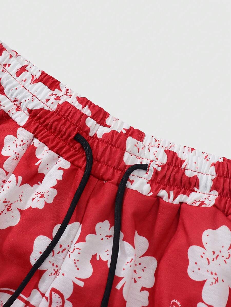 Street Life Conjunto de camiseta de manga corta con cuello redondo y estampado de letras y labios, talla grande pantalón corto con cordón en la cintura para hombres