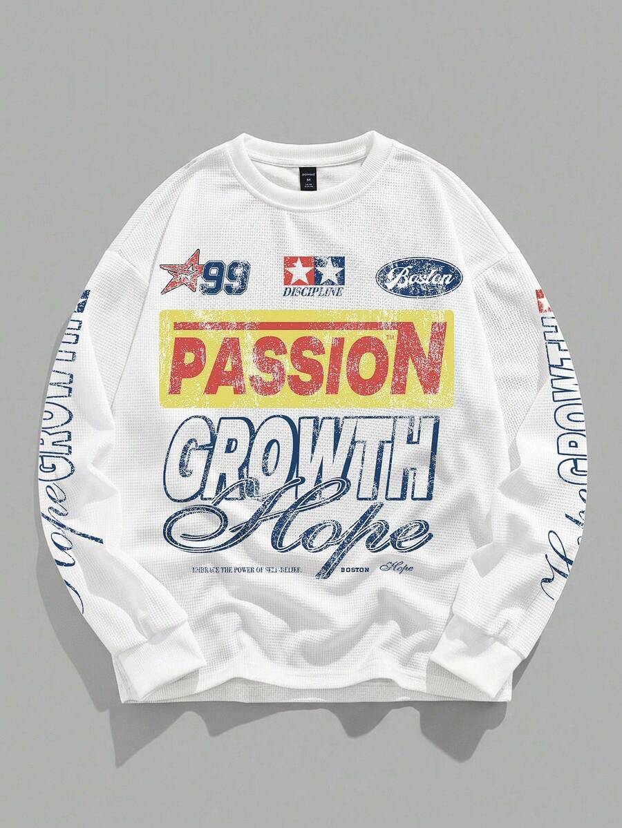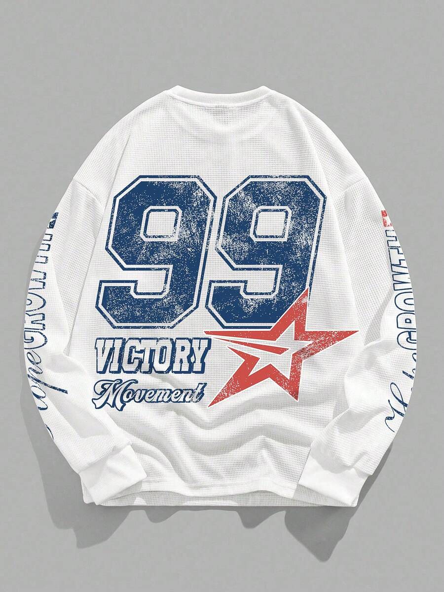 Street Life Sudadera de cuello redondo con estampado de letra y pentagrama de manga larga tipo waffle para hombre