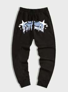 Street Life Pantalones de chándal casuales con cordón e impresión de letras para hombre