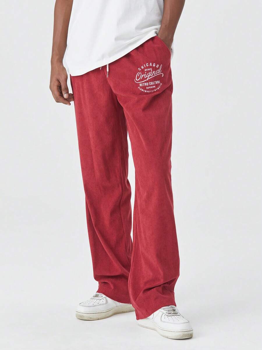 Street Life Pantalones casuales y holgados con cordón en la cintura y bolsillos con estampado de letras para hombre