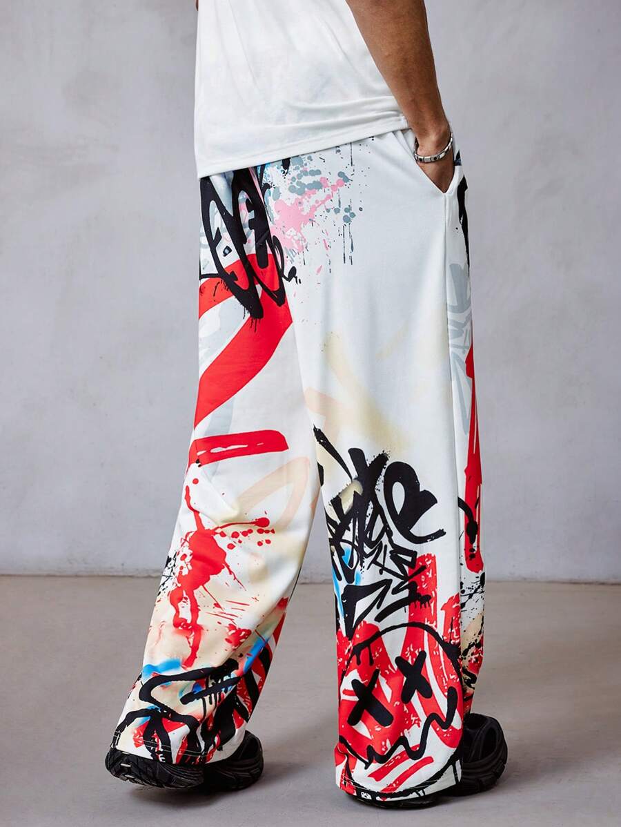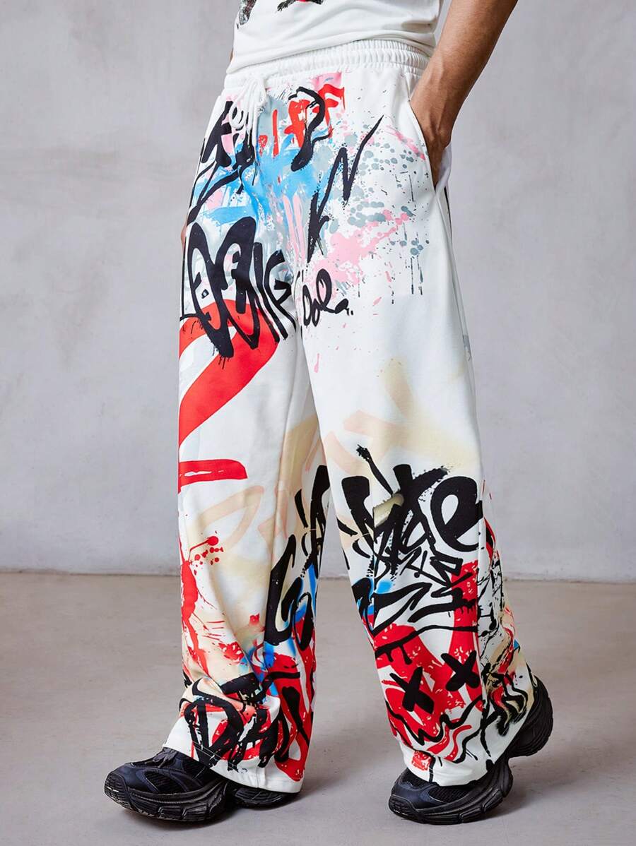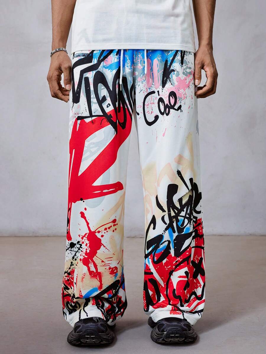 Street Life Pantalón de chándal para hombre con estampado de letra, cordón para ajuste a la cintura y bolsillos