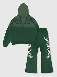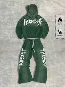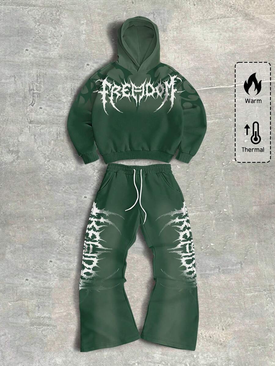 Street Life Conjunto de sudadera con capucha y pantalón de chándal con estampado de letras gótico para hombres, ropa de otoño e invierno