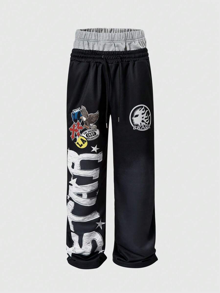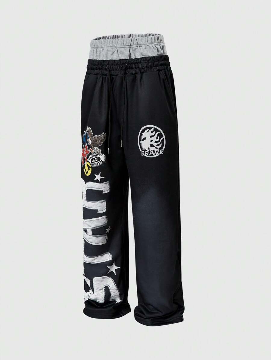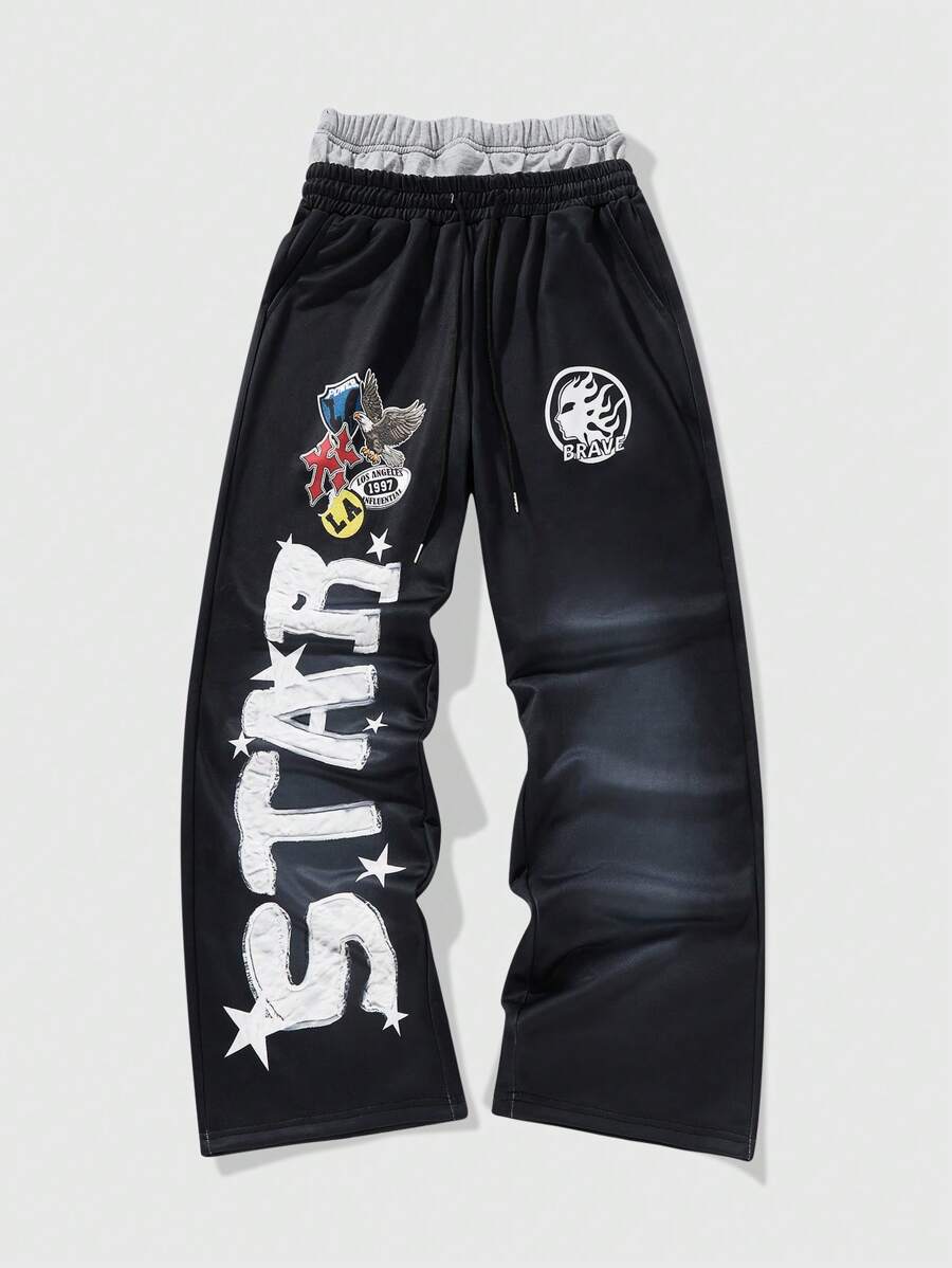 Street Life Pantalones de chándal holgados con estampado de letras, bolsillos y cintura ancha para hombres