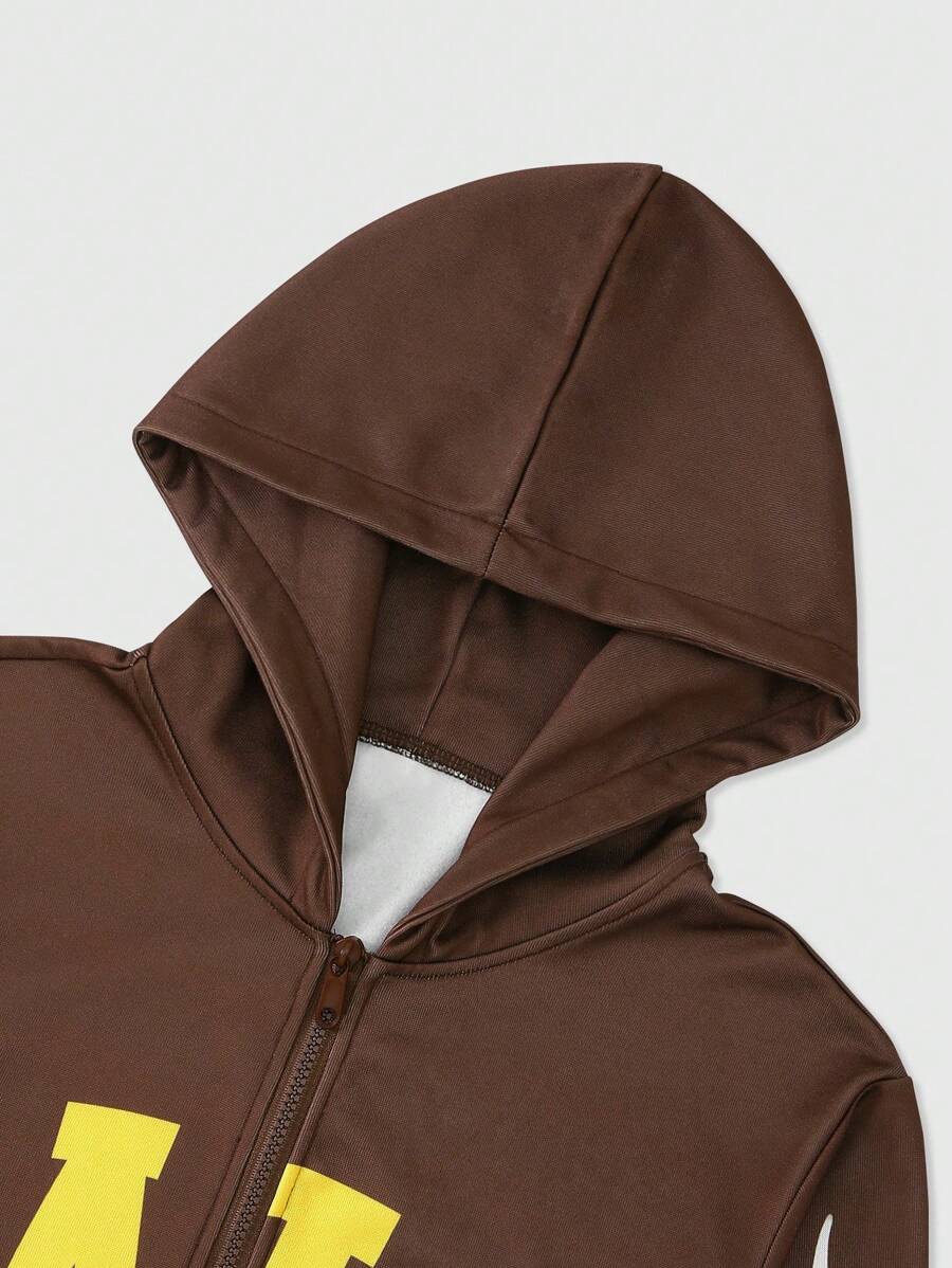 Street Life Conjunto informal de 2 piezas con sudadera con capucha con cremallera y estampado de letras, y pantalón de chándal para hombre, apto para otoño/invierno