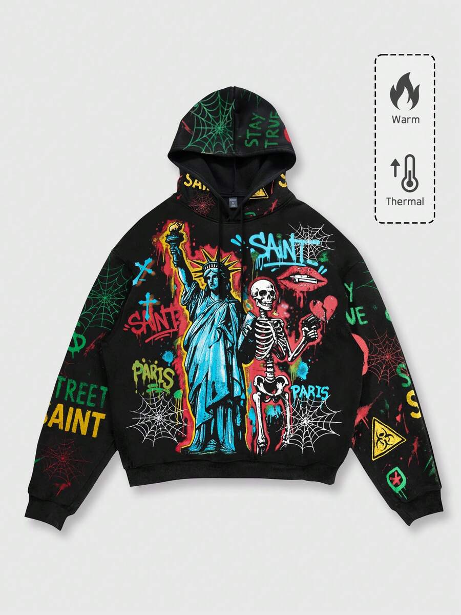 Street Life Sudadera con capucha de manga larga para hombre con cordón y gráfico creativo de cruz y calavera
