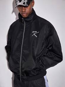 Street Life Chaqueta casual con cremallera y cuello bordado de manga larga para hombre