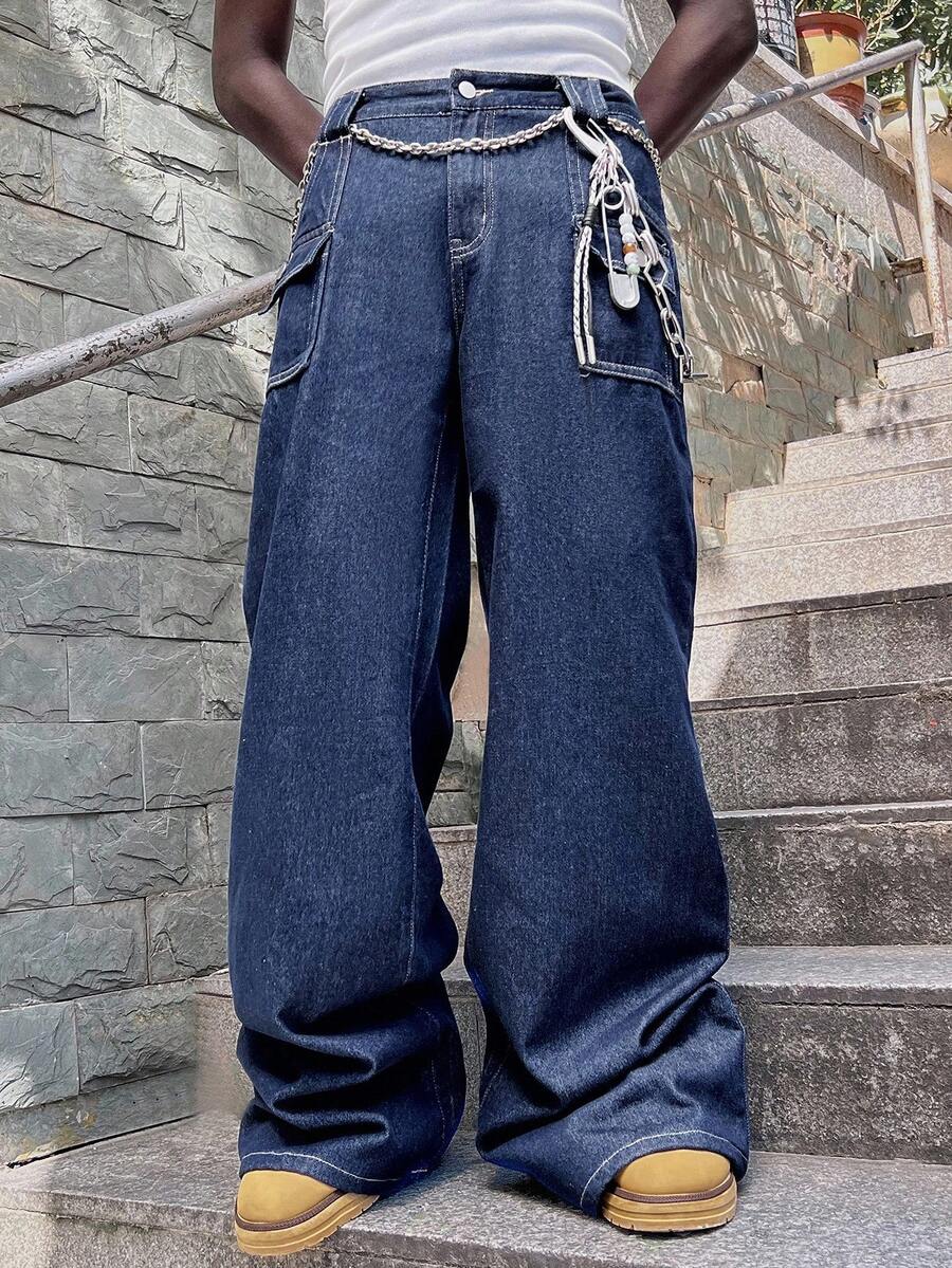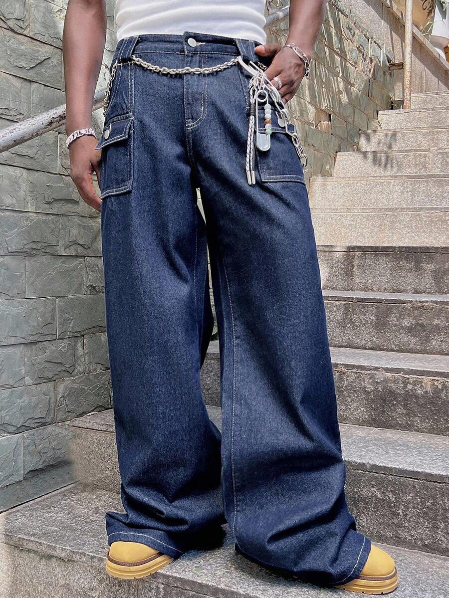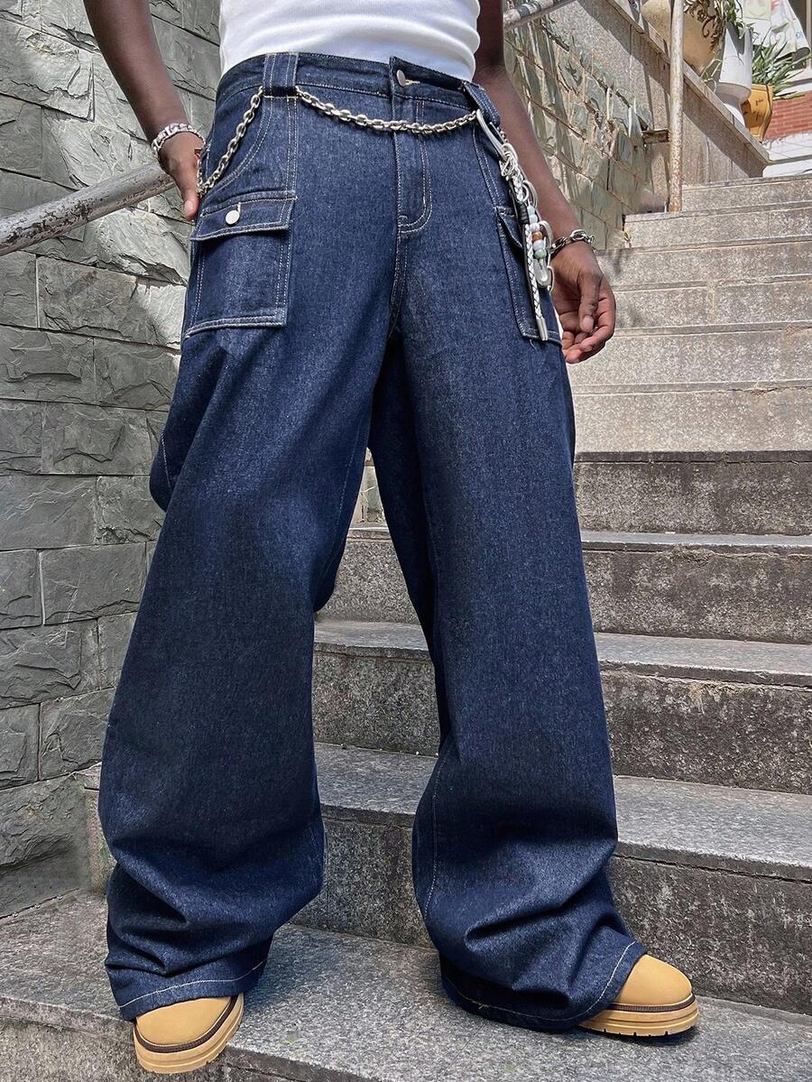 Street Life Pantalones vaqueros holgados con bolsillos cargo para hombres