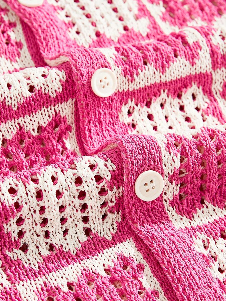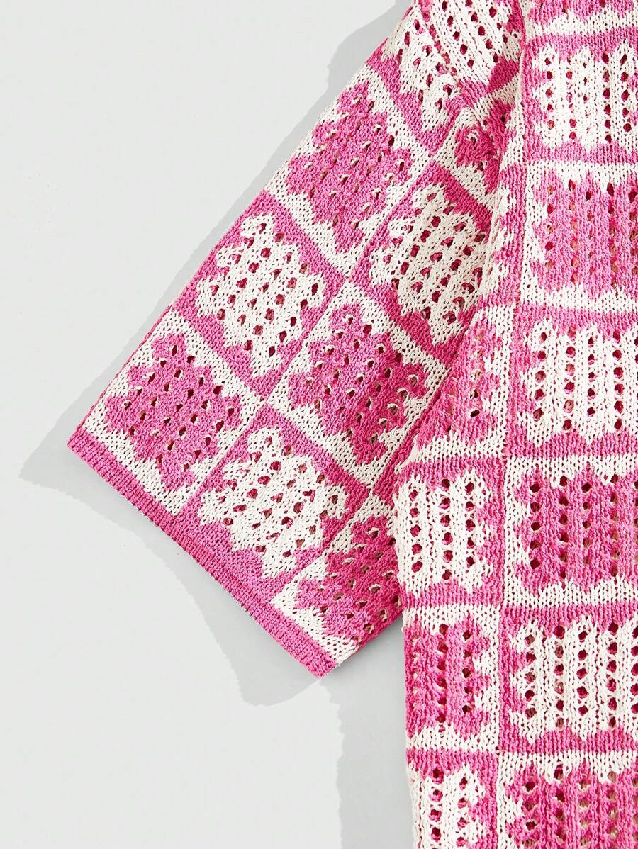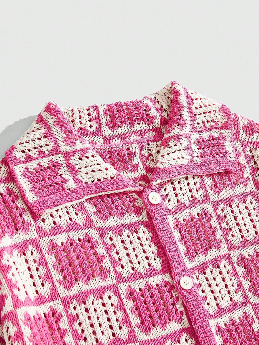 Street Life Camisa de punto suelta con hombros caídos y calados para hombre, camisa de vacaciones/fiesta