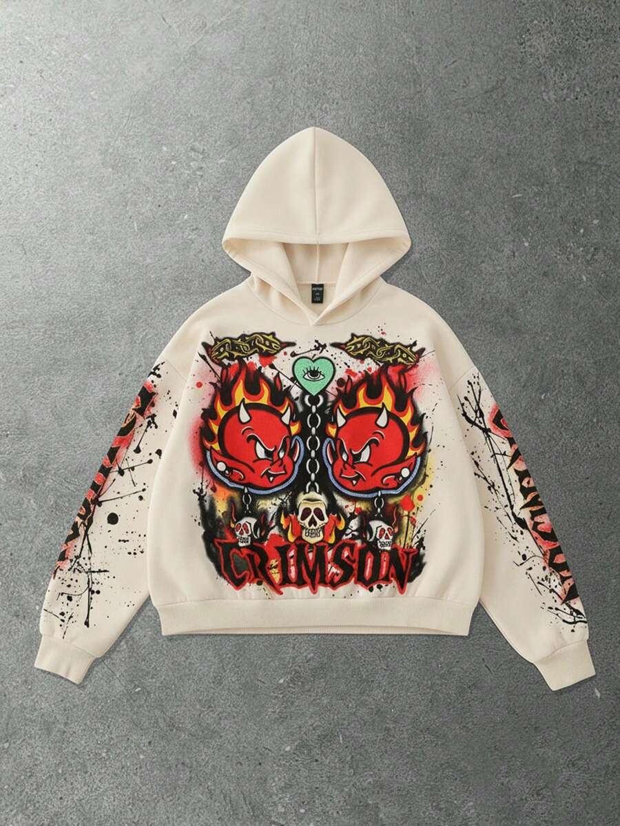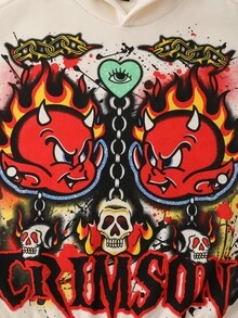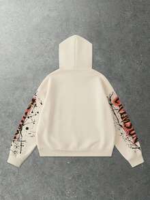 Street Life Sudadera con capucha de corte holgado con estampado gráfico para hombre, estilo callejero retro