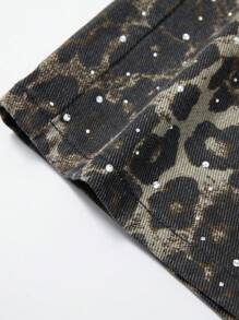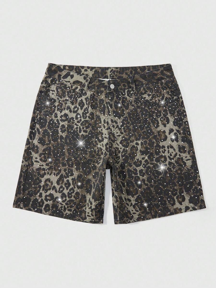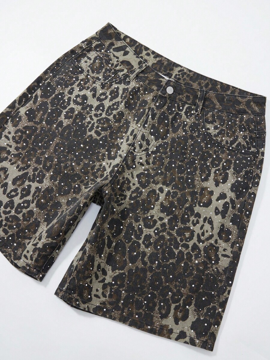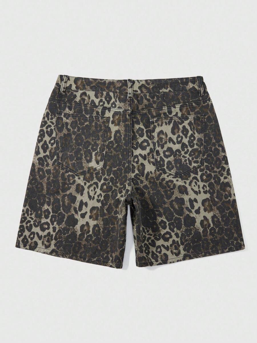 Street Life Shorts vaqueros de corte holgado con bolsillo y estampado de leopardo para hombre