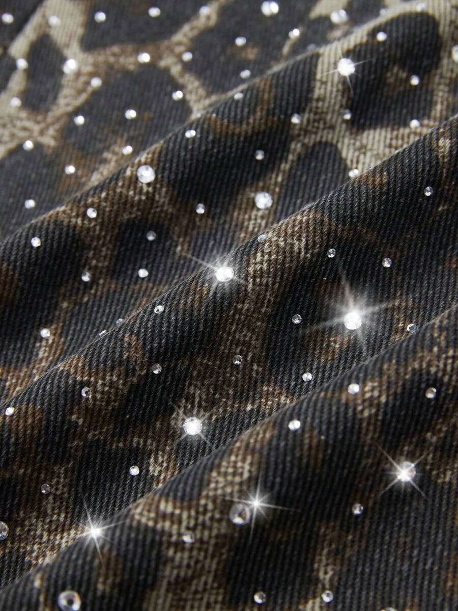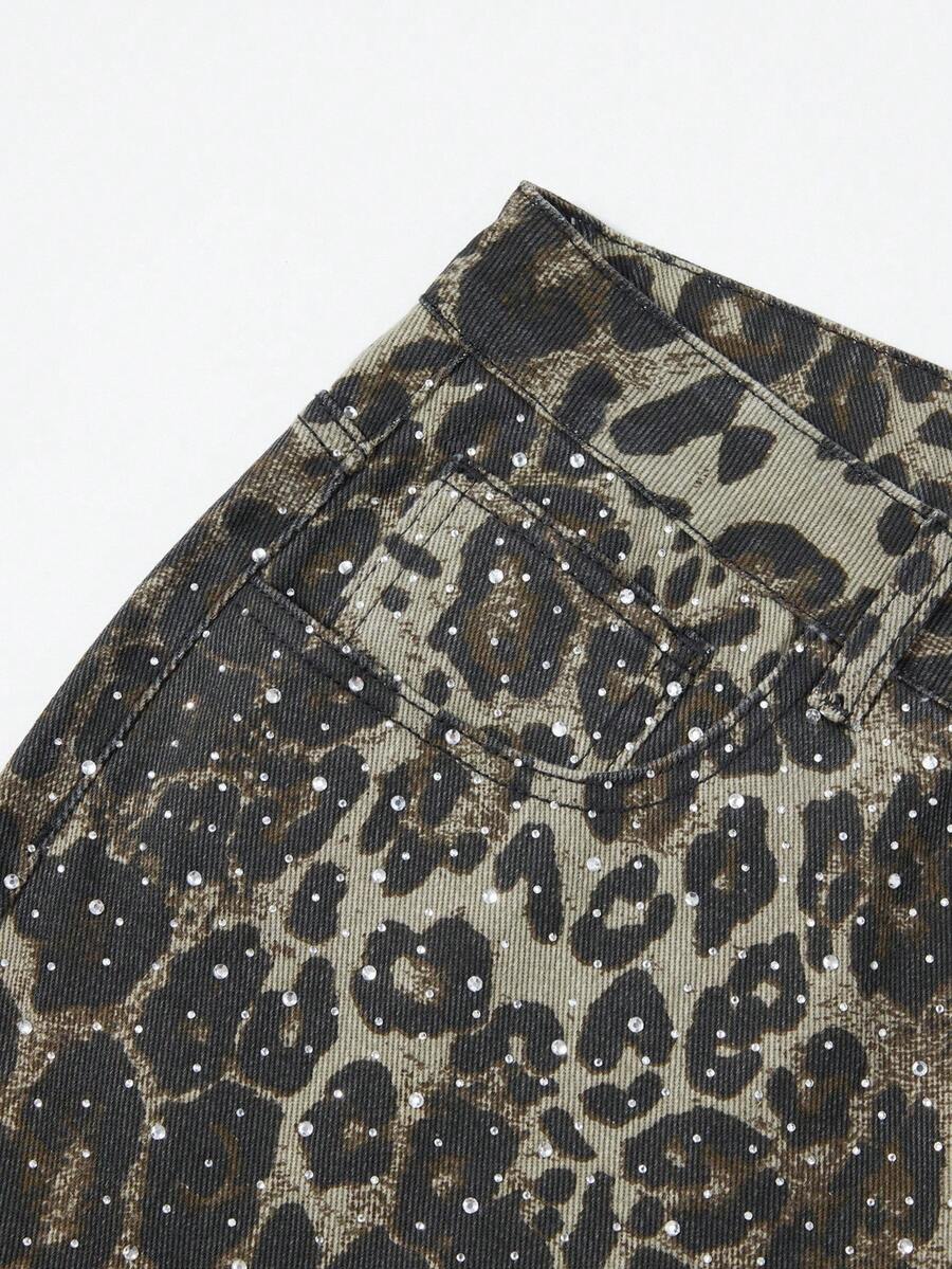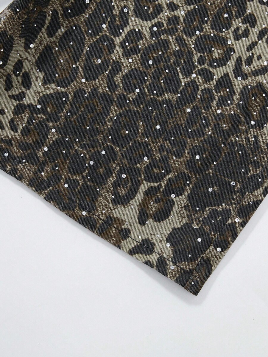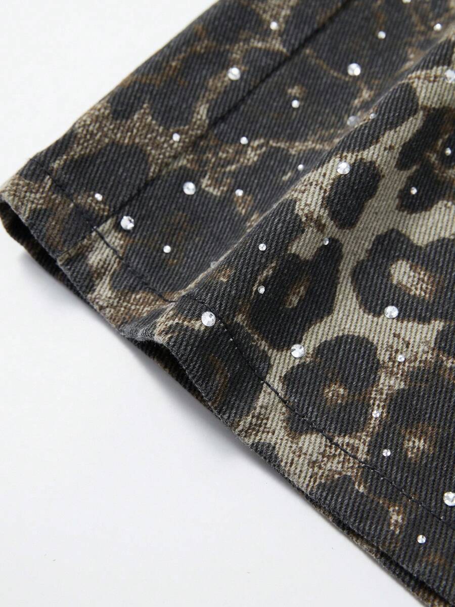 Street Life Shorts vaqueros de corte holgado con bolsillo y estampado de leopardo para hombre