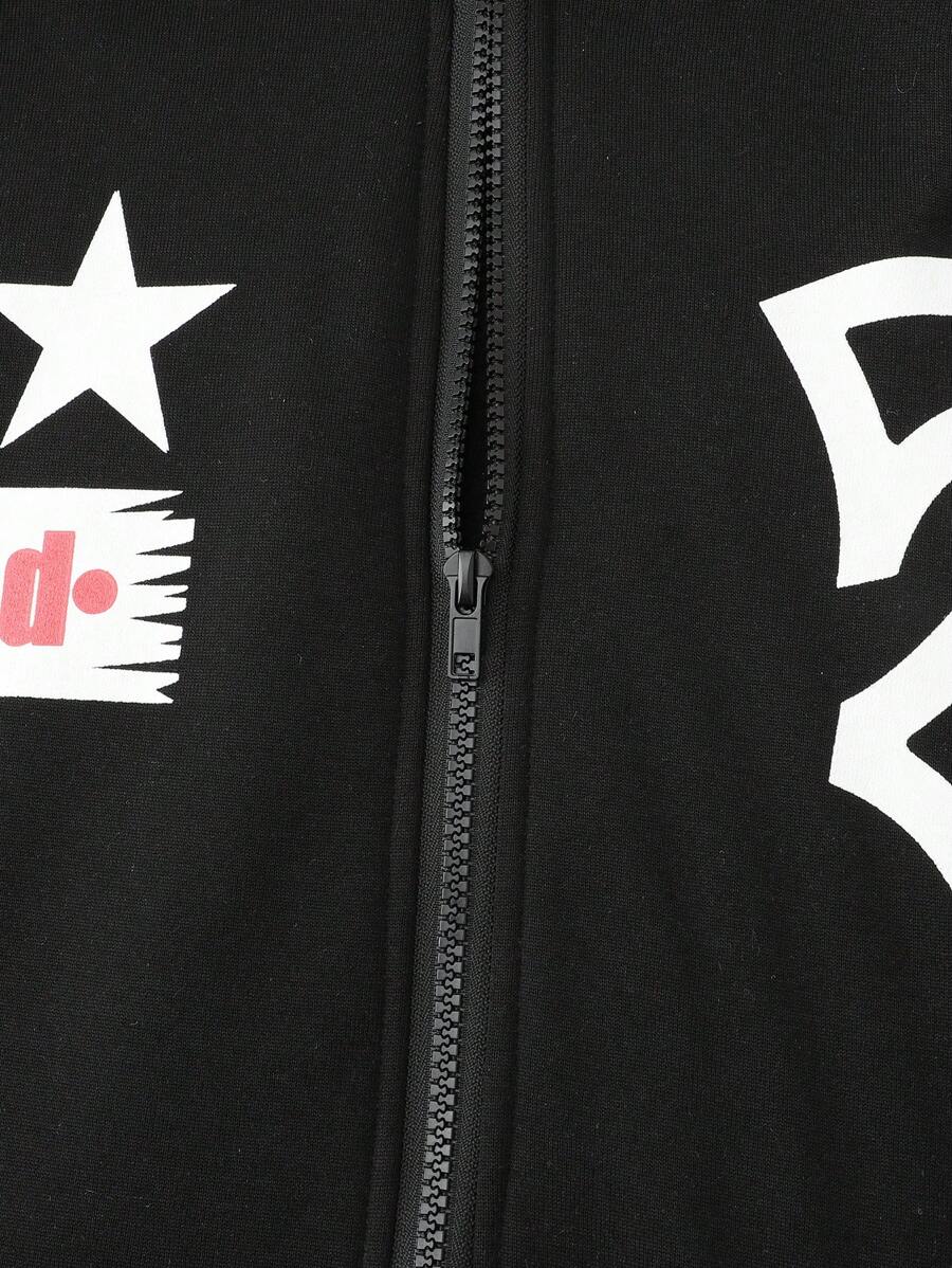 Street Life Sudadera con capucha y cremallera holgada para hombres con estampado de cráneos y llamas