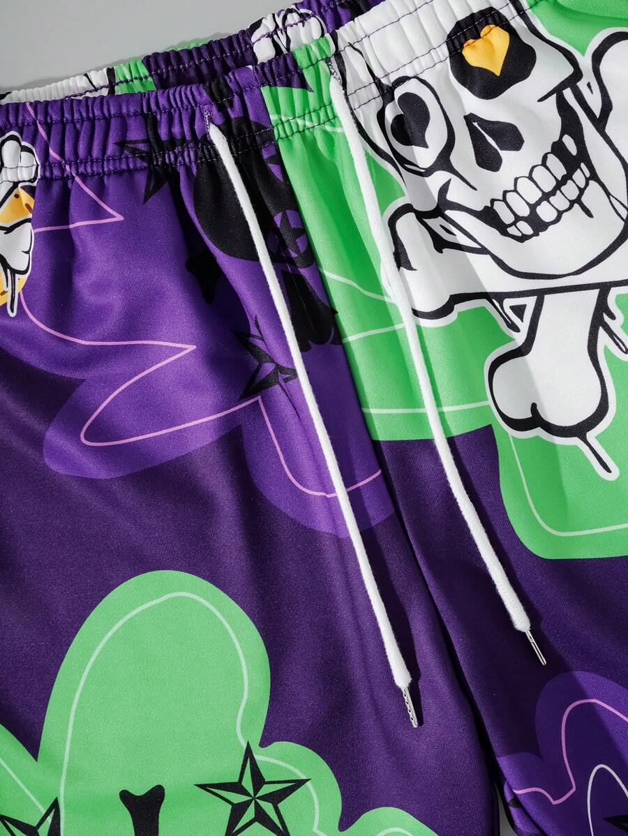 Street Life Conjunto de sudadera y pantalones holgados con estampado de calavera y flores para hombre