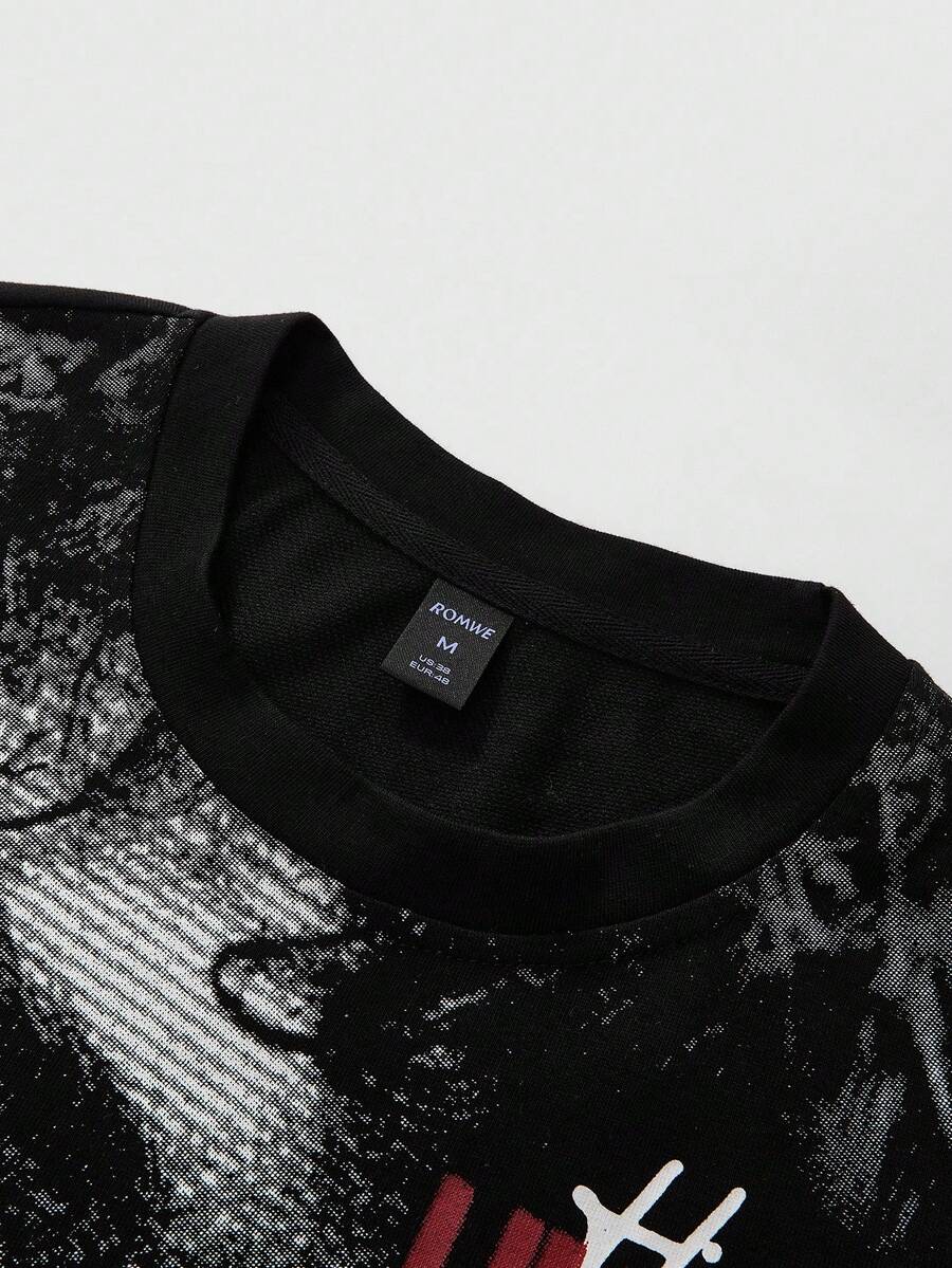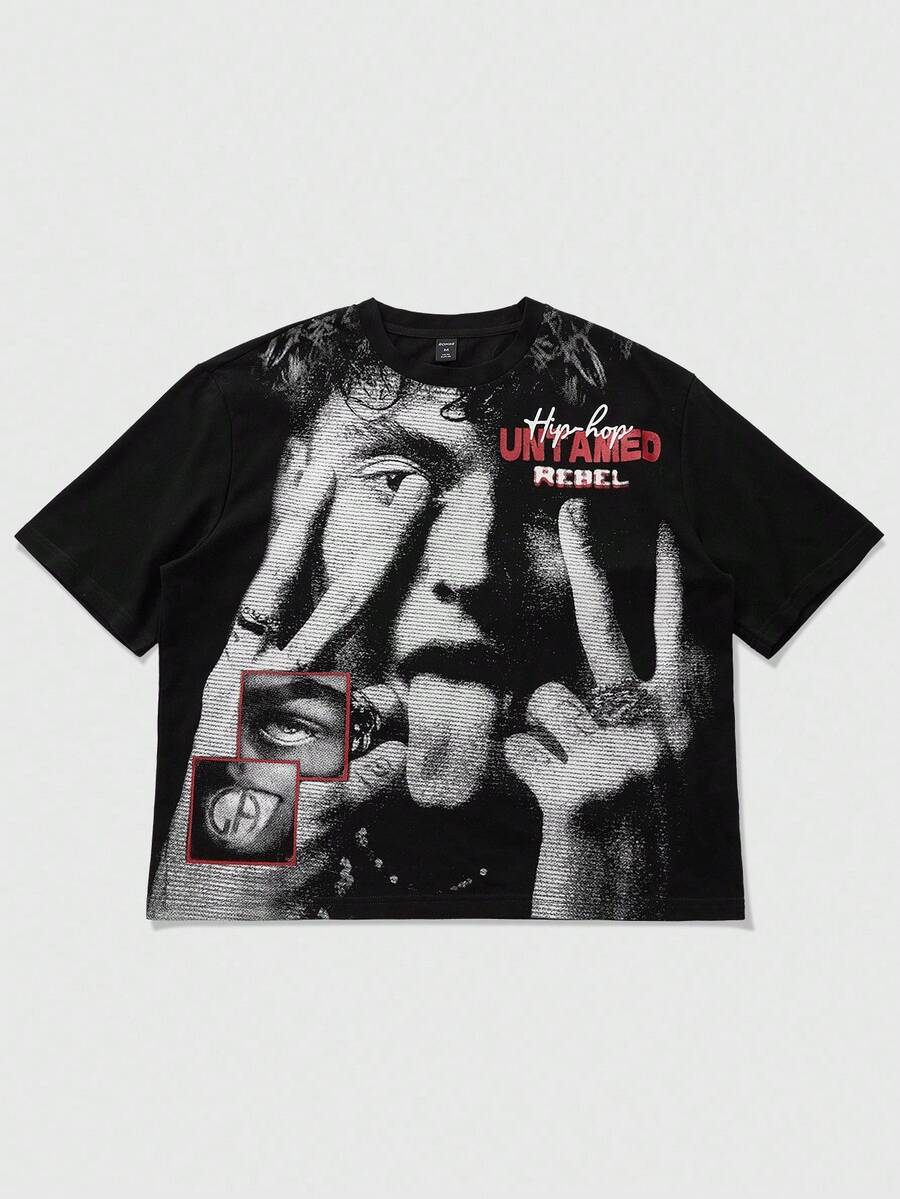 Street Life Camiseta de manga corta con técnica de impresión de malla y diseño de personajes de hip hop, adecuada para uso diario, primavera/verano