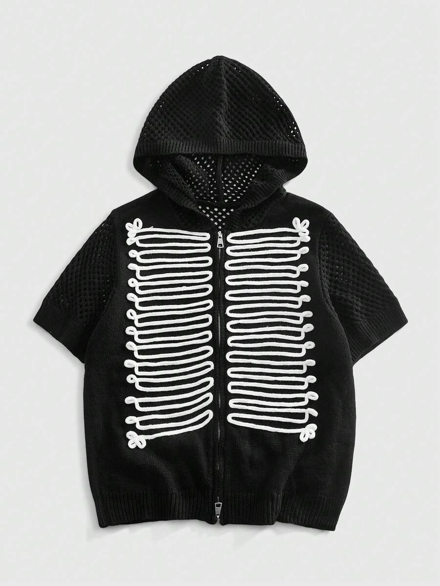 Street Life Cárdigan de punto con capucha de manga corta y estampado minimalista para hombre