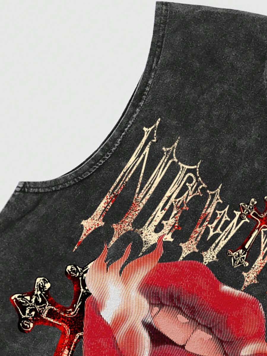 Street Life Camiseta de tirantes con estampado de boca lavada y desgastada para hombre, para el verano, la escuela, estilo de los 2000