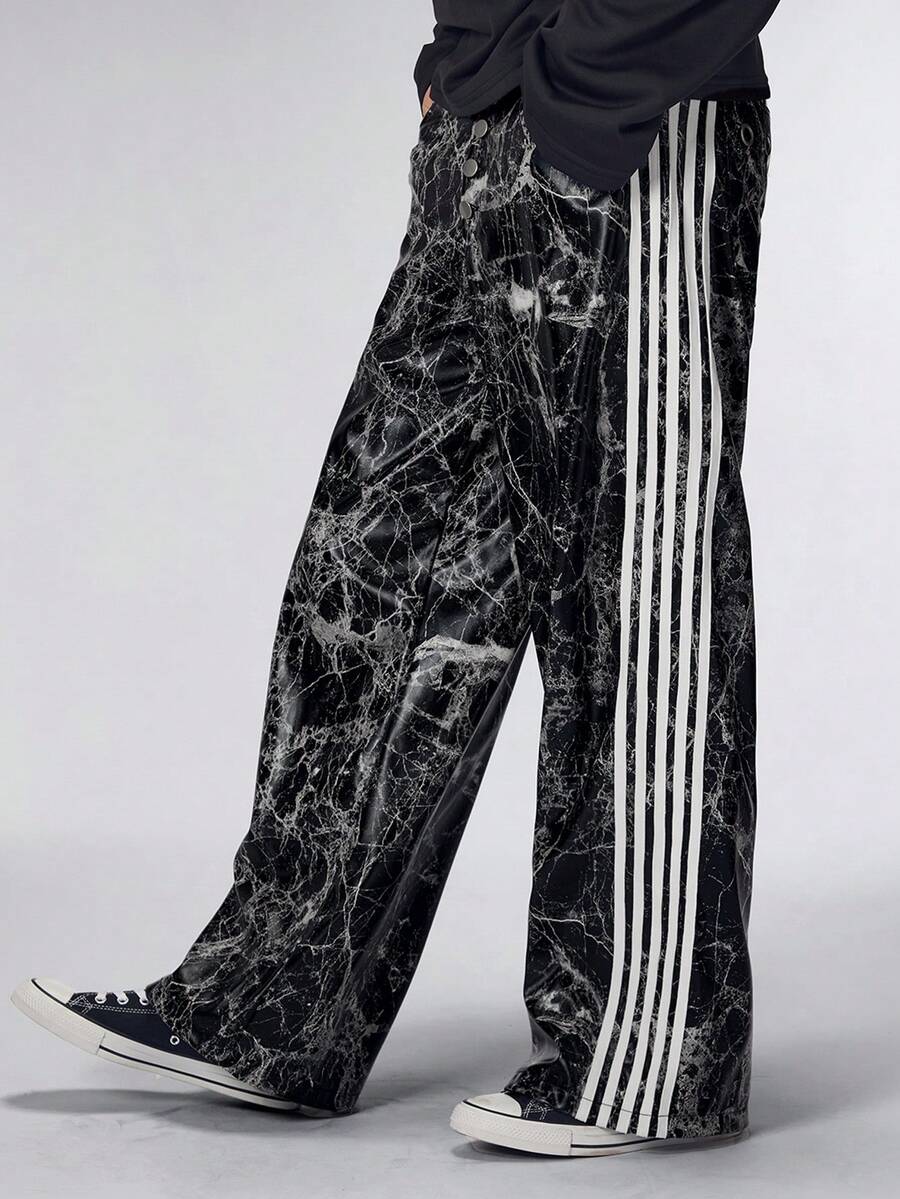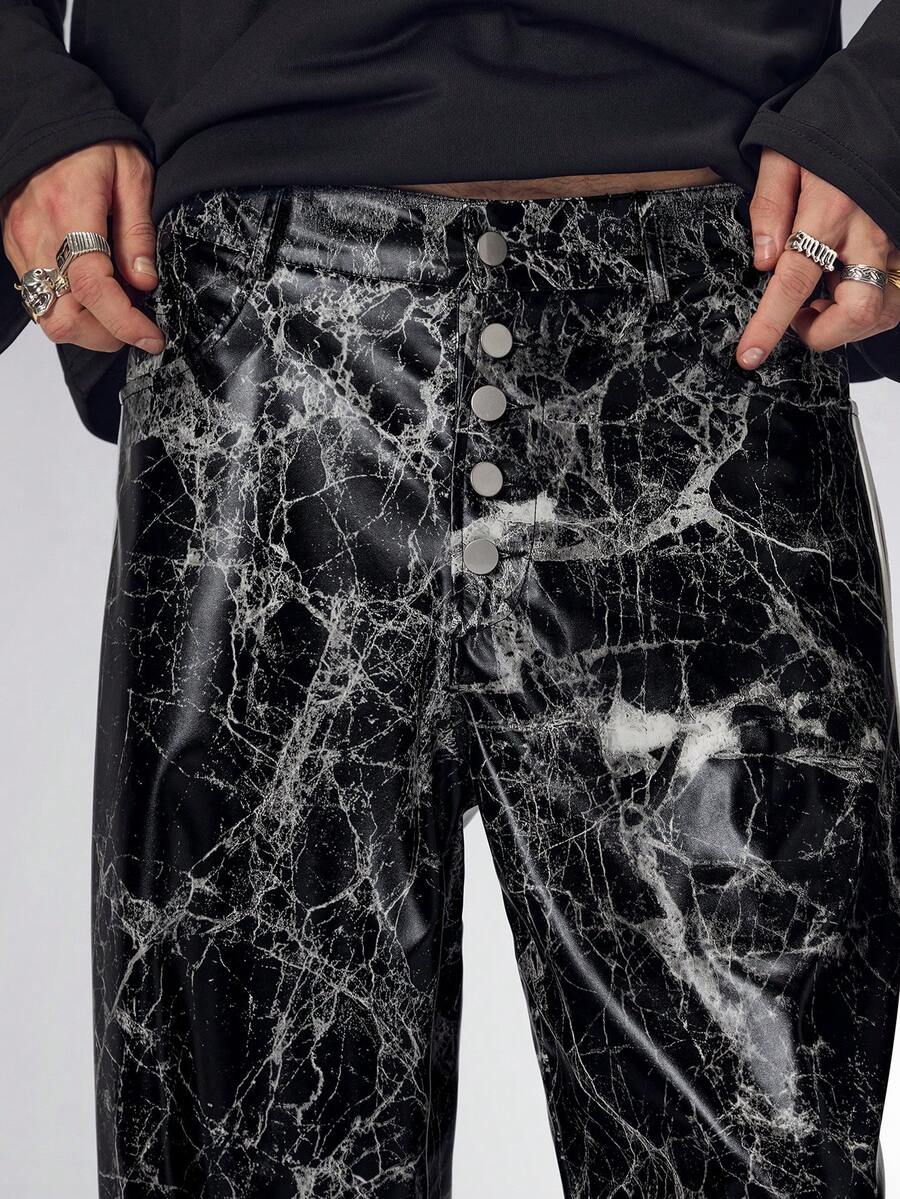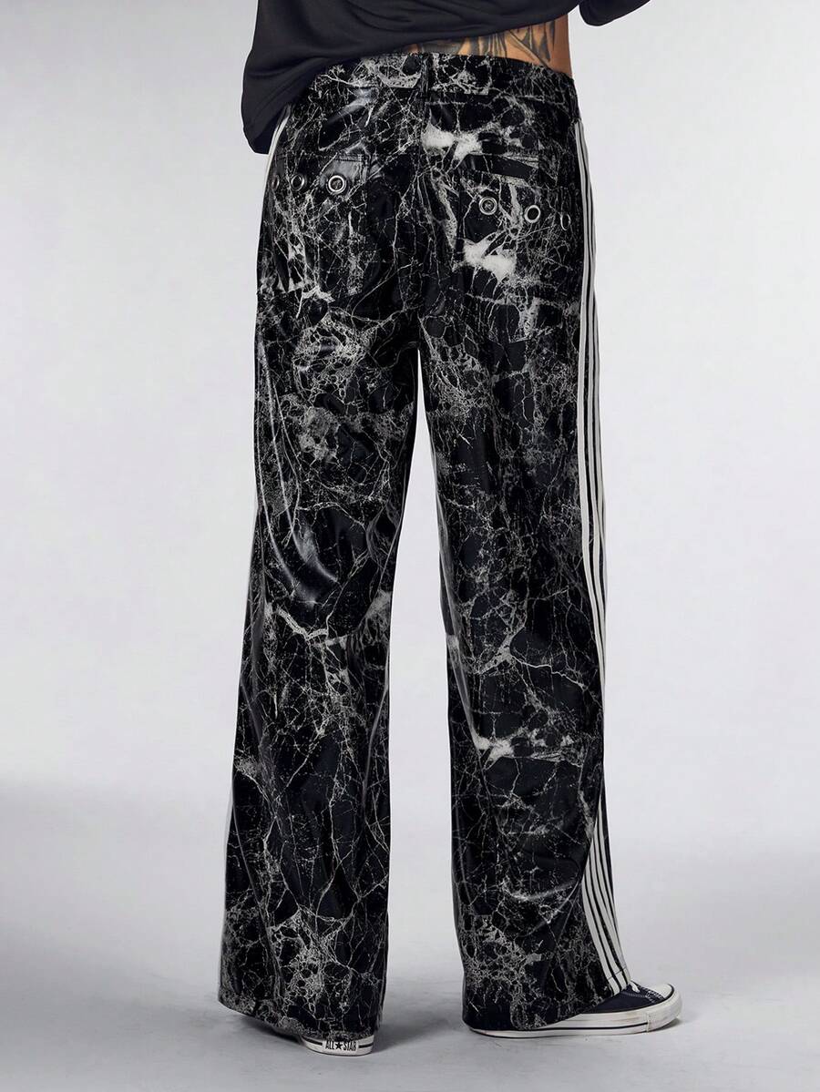 Street Life Pantalones casuales anchos de hombre con tiras de cuero sintético PU y cinturón