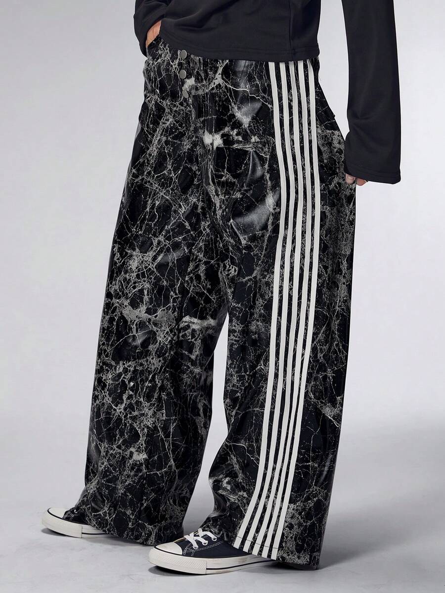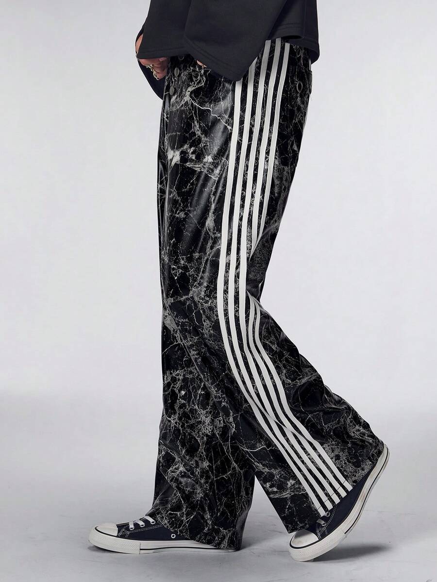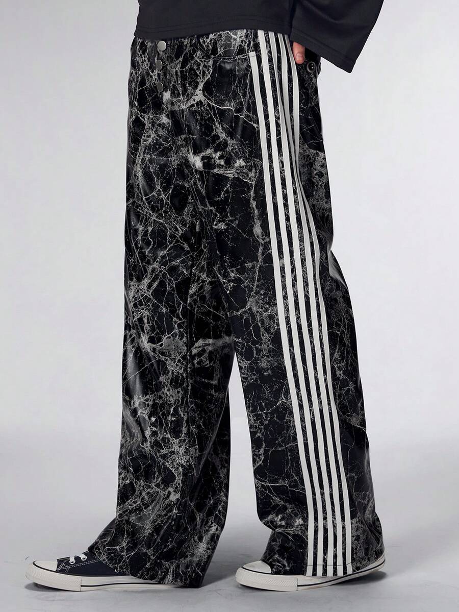 Street Life Pantalones casuales anchos de hombre con tiras de cuero sintético PU y cinturón