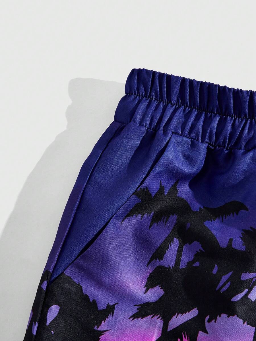 Street Life Pantalones cortos de baloncesto con cordón en la cintura y estampado de palmeras y letras para hombre