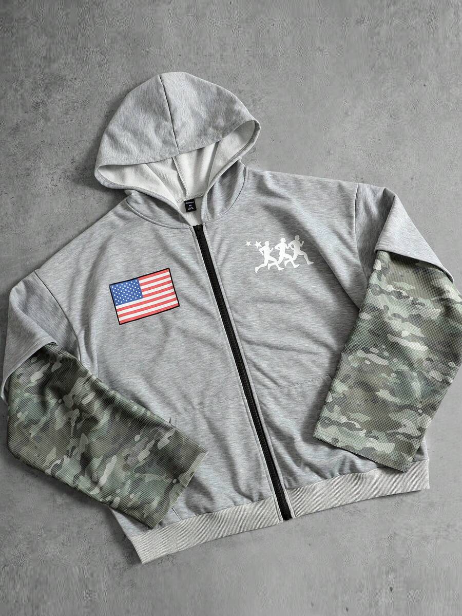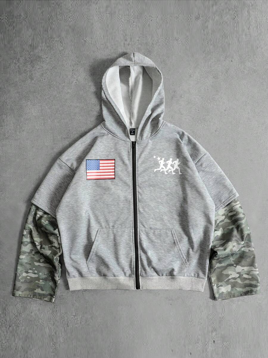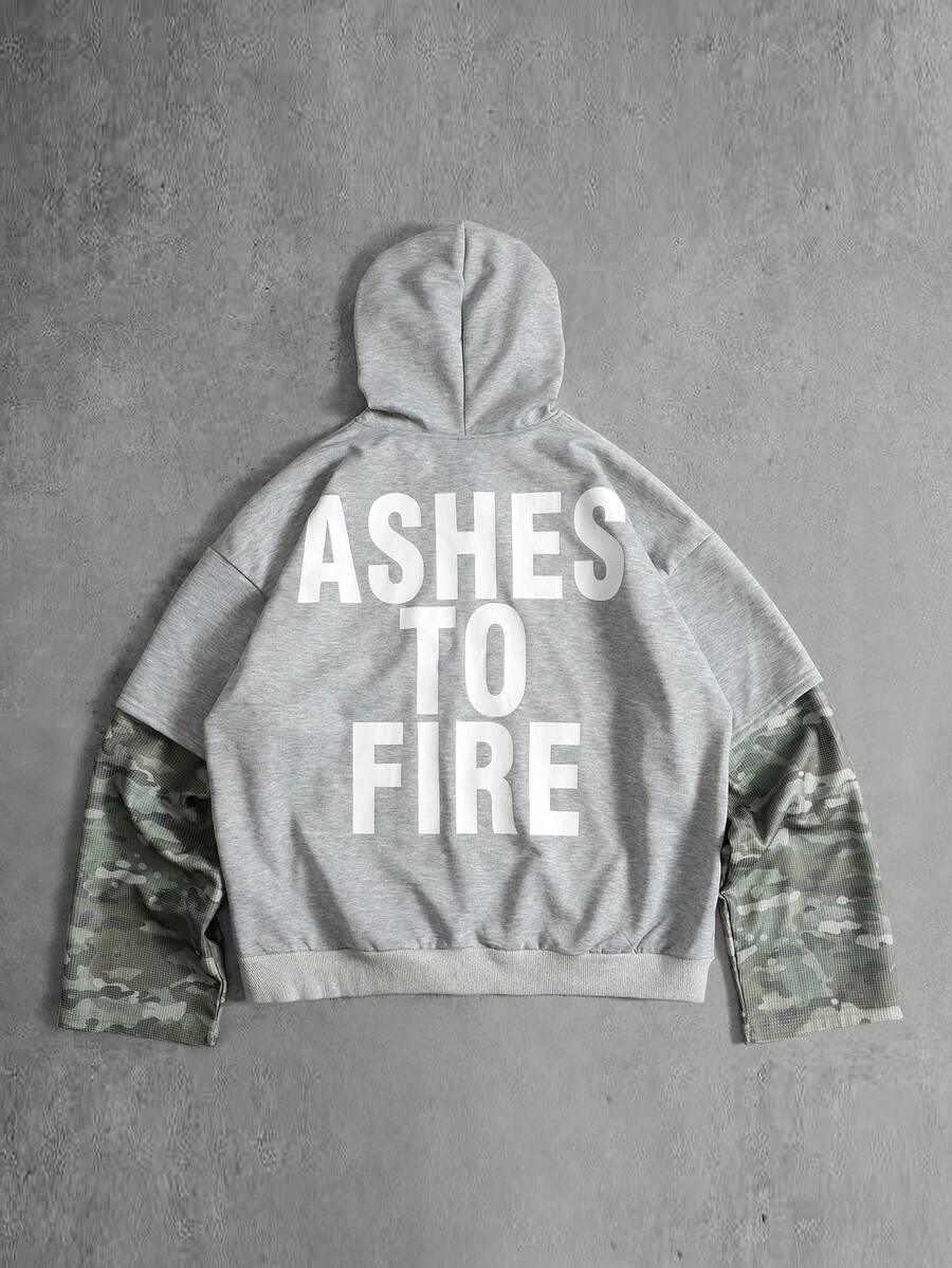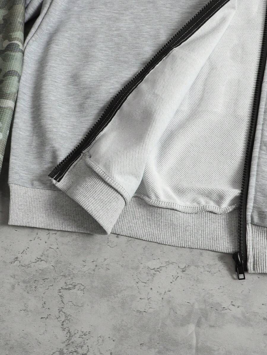Street Life Sudadera con capucha de camuflaje de retazos para hombre, corte holgado