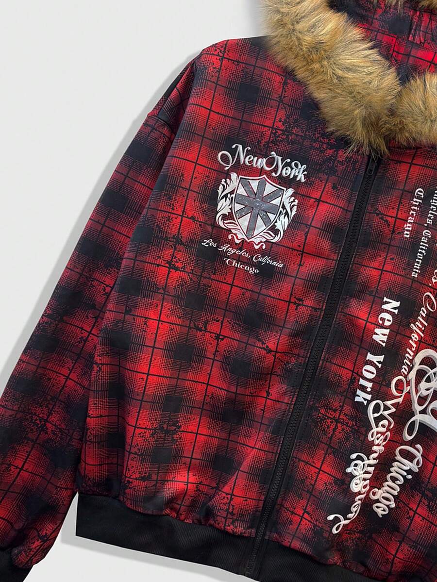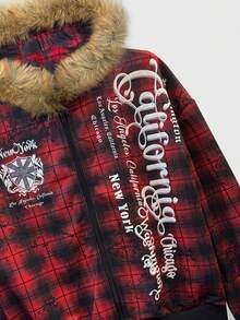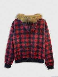Street Life Sudadera de manga larga con cuello de felpa y estampado a cuadros para hombre