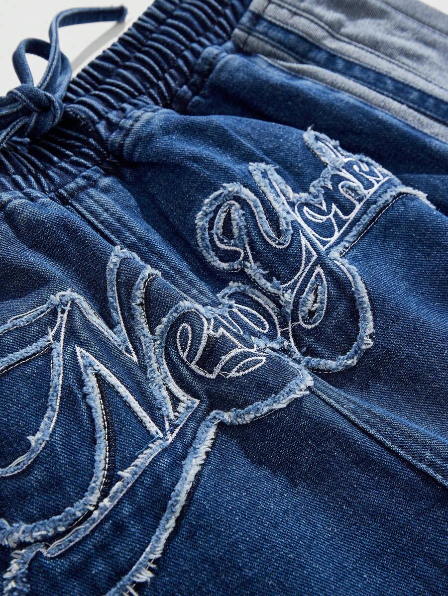 Prep Pantalones cortos vaqueros para hombres con bloques de color y aplicación de letras
