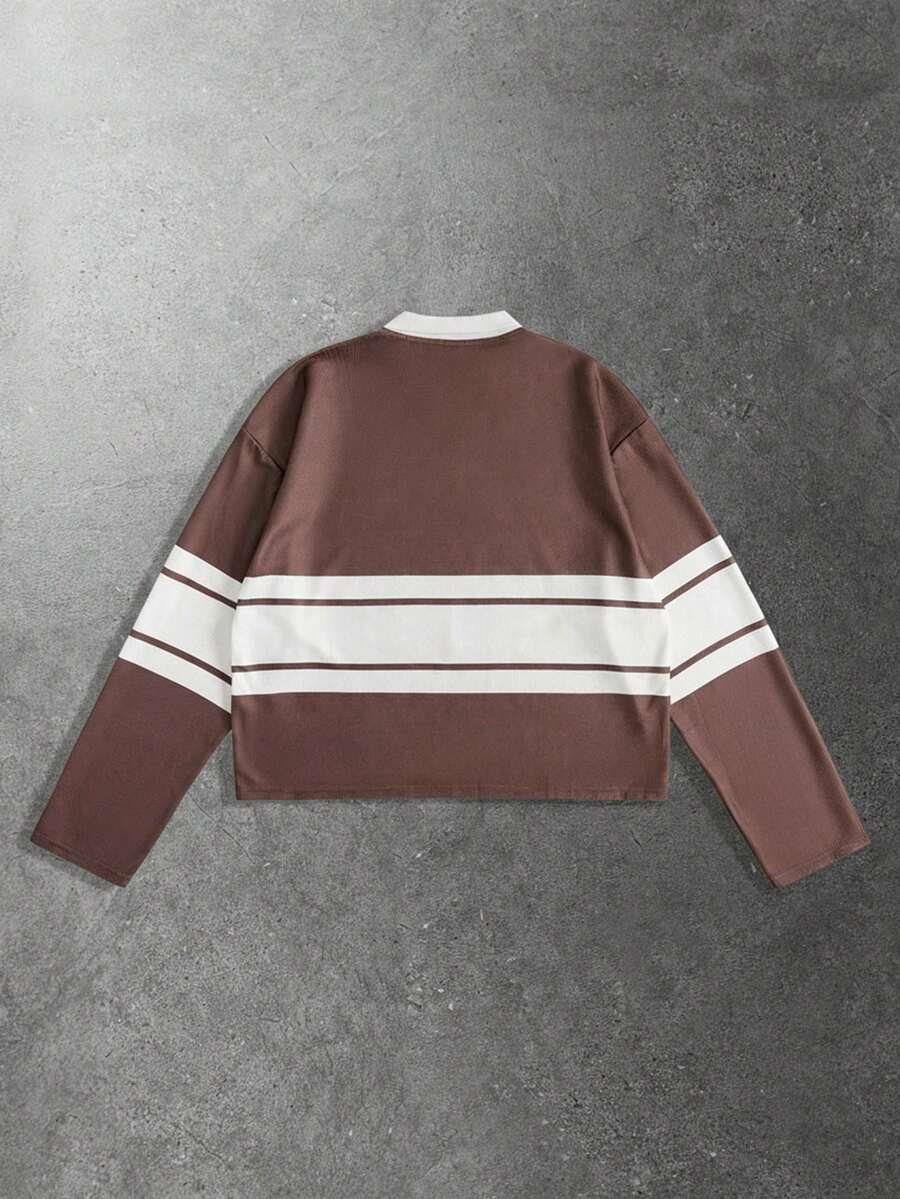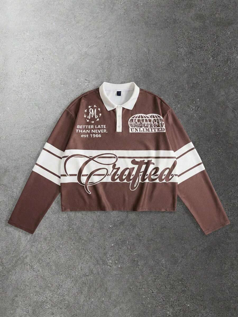 Street Life Camisa polo de manga larga con estampado de estilo universitario para hombre, otoño/invierno