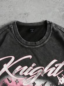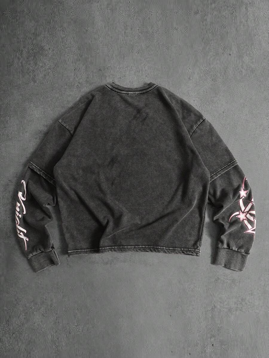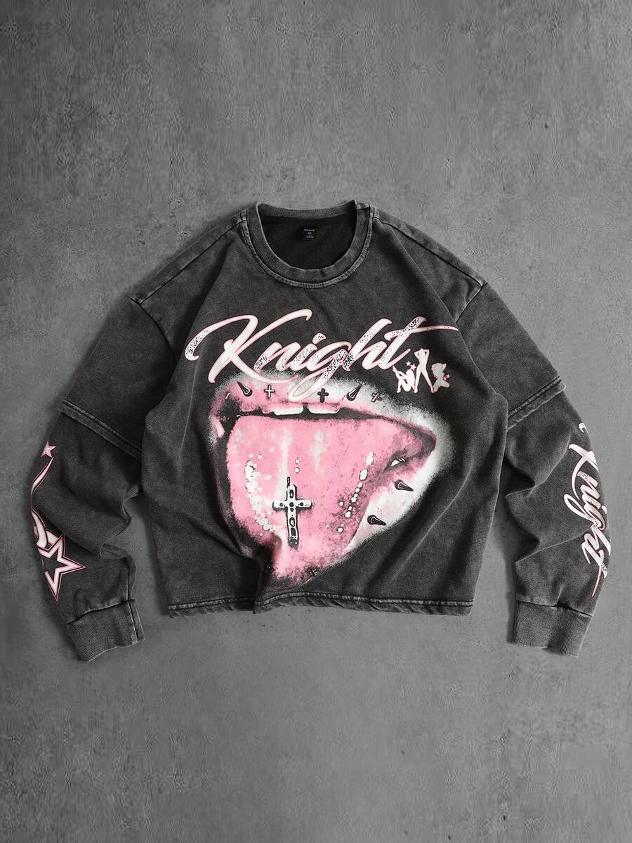 Street Life Camiseta de manga larga con estampado y doble capa de mangas desgastadas para hombre, corte holgado