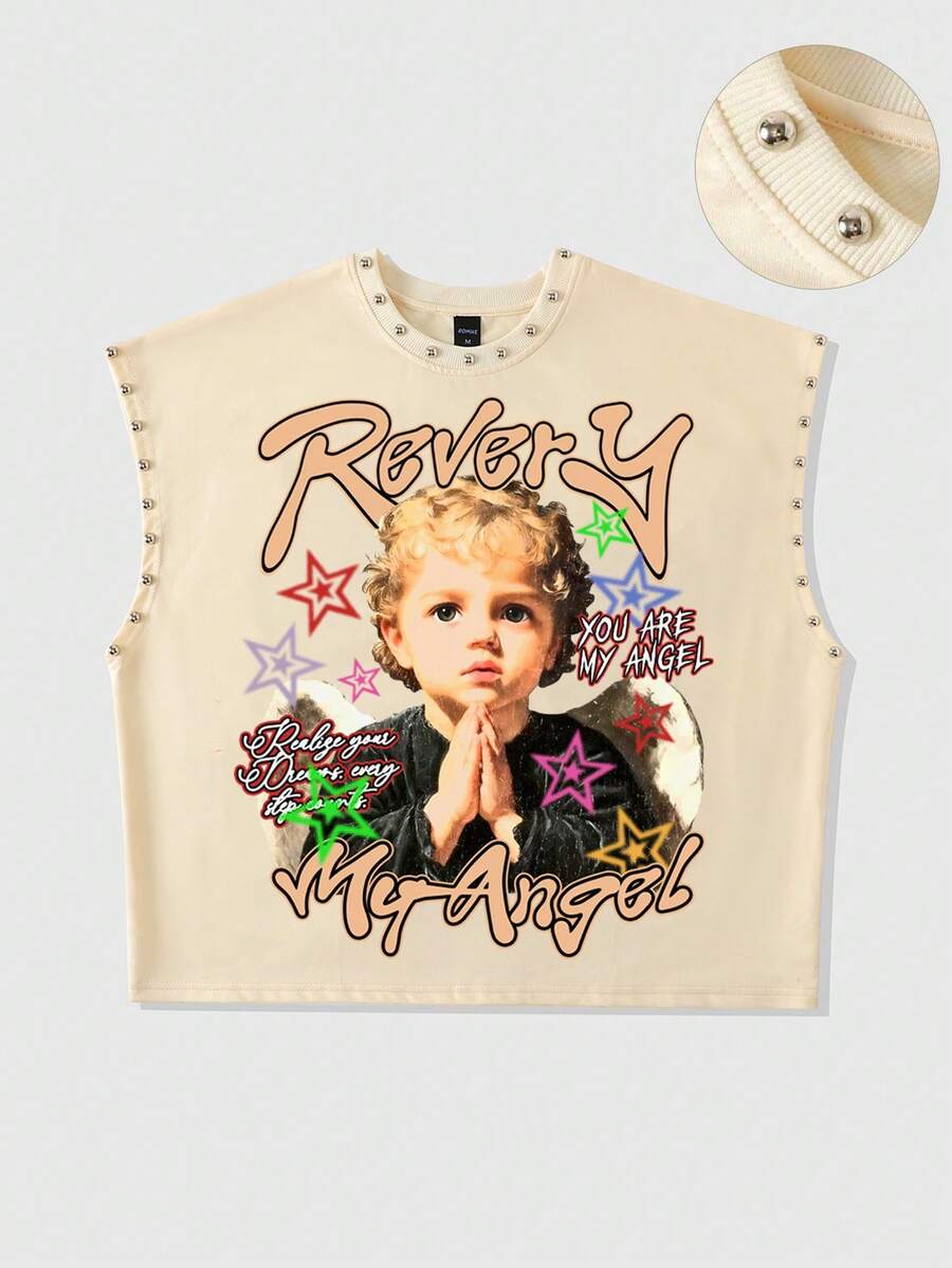 Street Life Camiseta de tirantes suelta con estampado y remaches para hombre