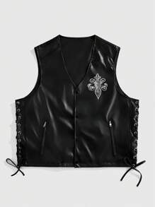 Street Life Chaleco de moda PU con impresión de lema para hombres