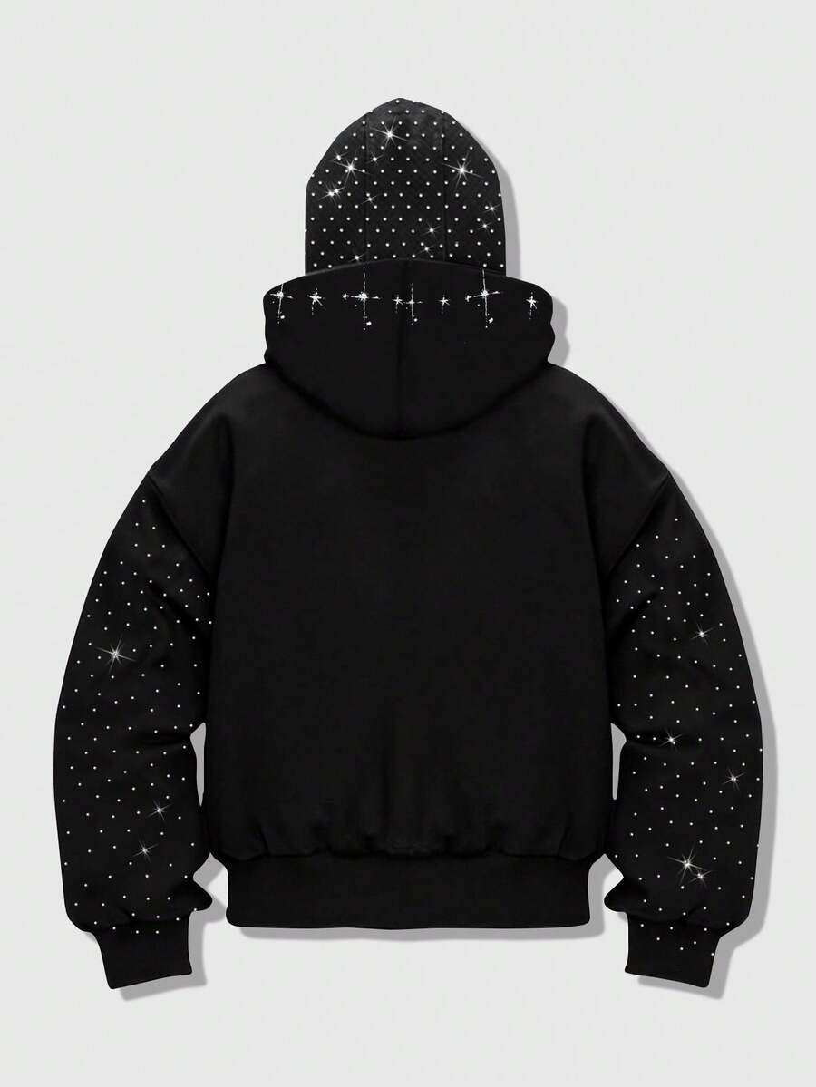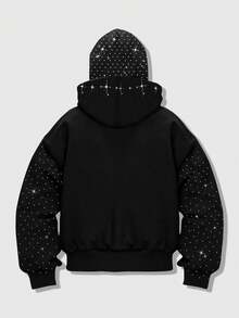 Street Life Sudadera con estampado gráfico y adornos de rhinestone, estilo punk callejero para hombre, otoño/invierno