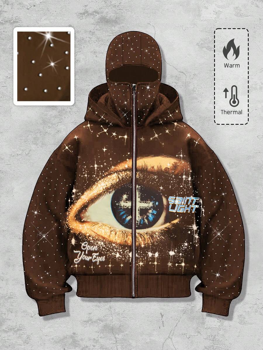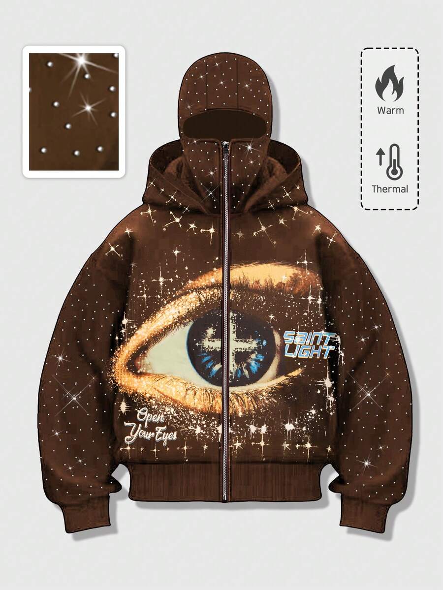 Street Life Sudadera con estampado gráfico y adornos de strass con estilo callejero punk para hombres, para otoño/invierno