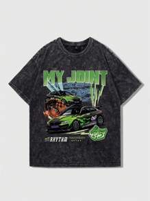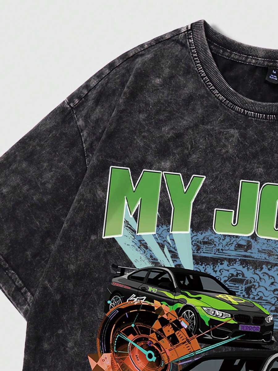 Street Life Camiseta De Manga Corta Y Cuello Redondo Para Hombre Con Impresión De Carreras De Coches, Adecuada Para El Uso Diario En Primavera Y Verano
