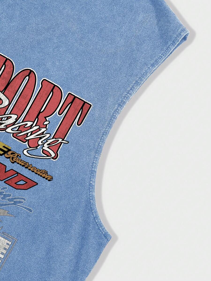 Street Life Camiseta sin mangas con cuello redondo casual con estampado de letras de de verano para hombres, escuela