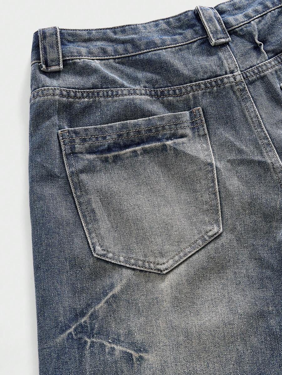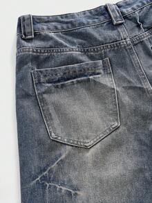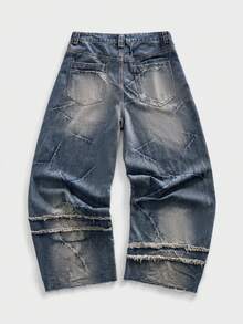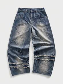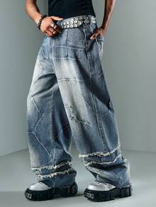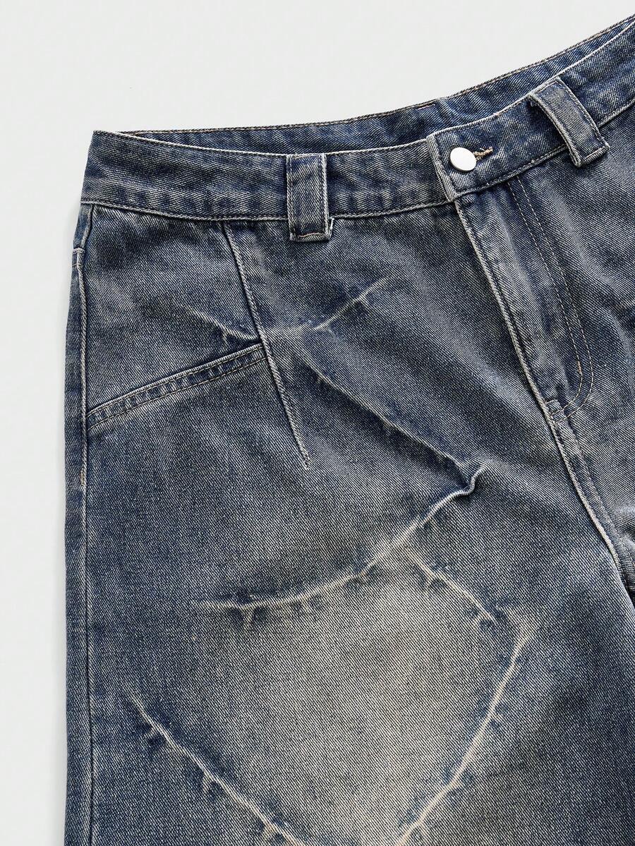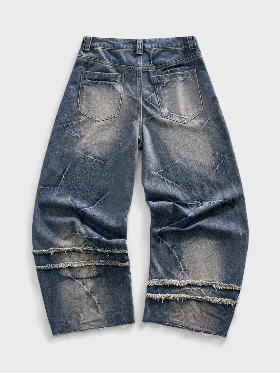 Street Life Jeans casuales de pierna ancha con lavado desgastado y ajuste relajado para hombres