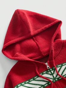 Street Life Cárdigan con capucha de punto jacquard estilo retro Fair Isle para hombre