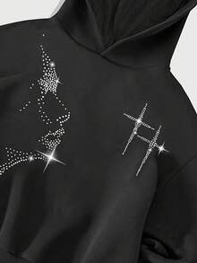 Street Life Sudadera con capucha holgada casual con estampado de figura y adornos de rhinestone para hombre, otoño