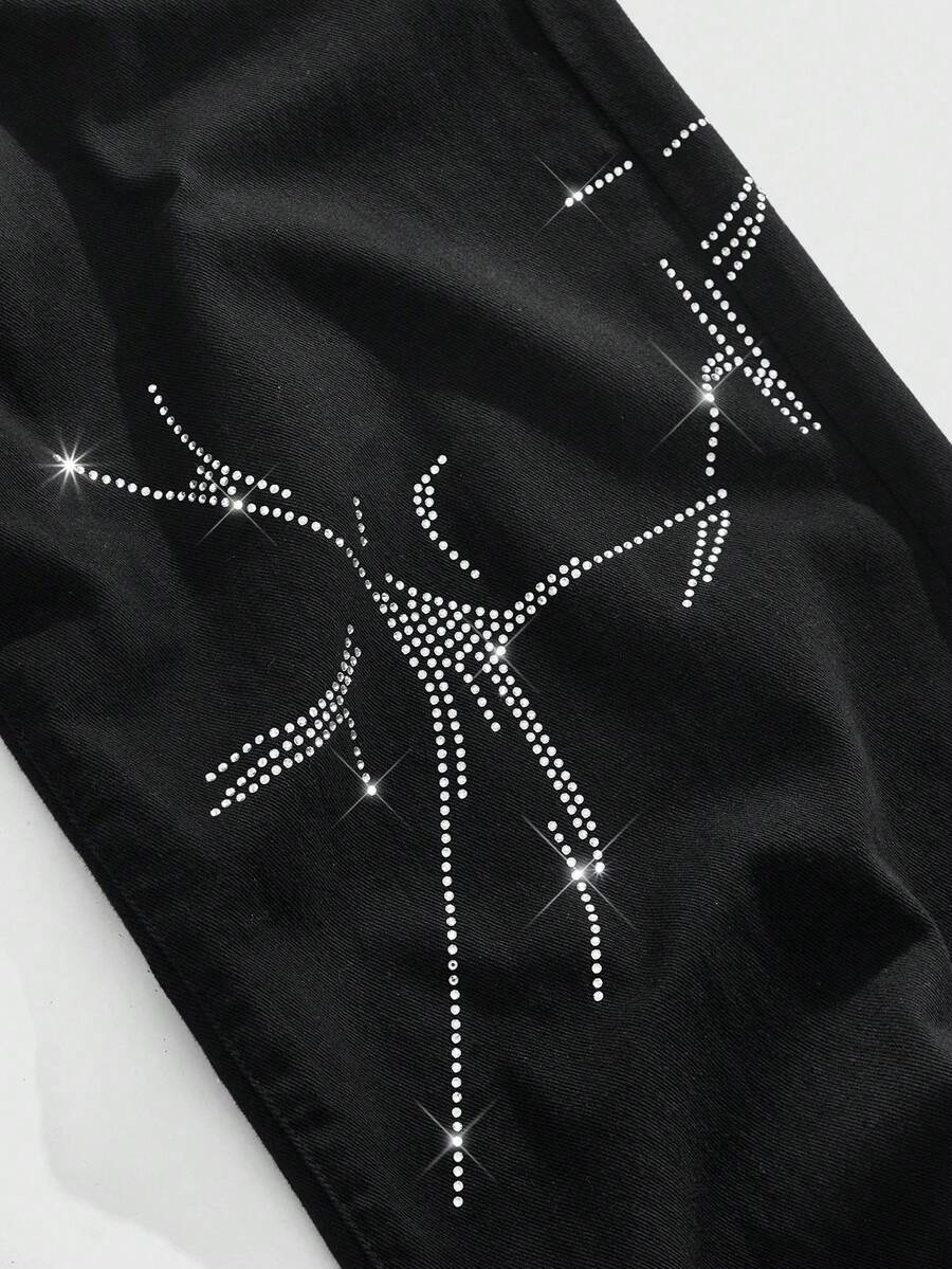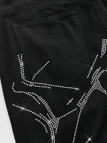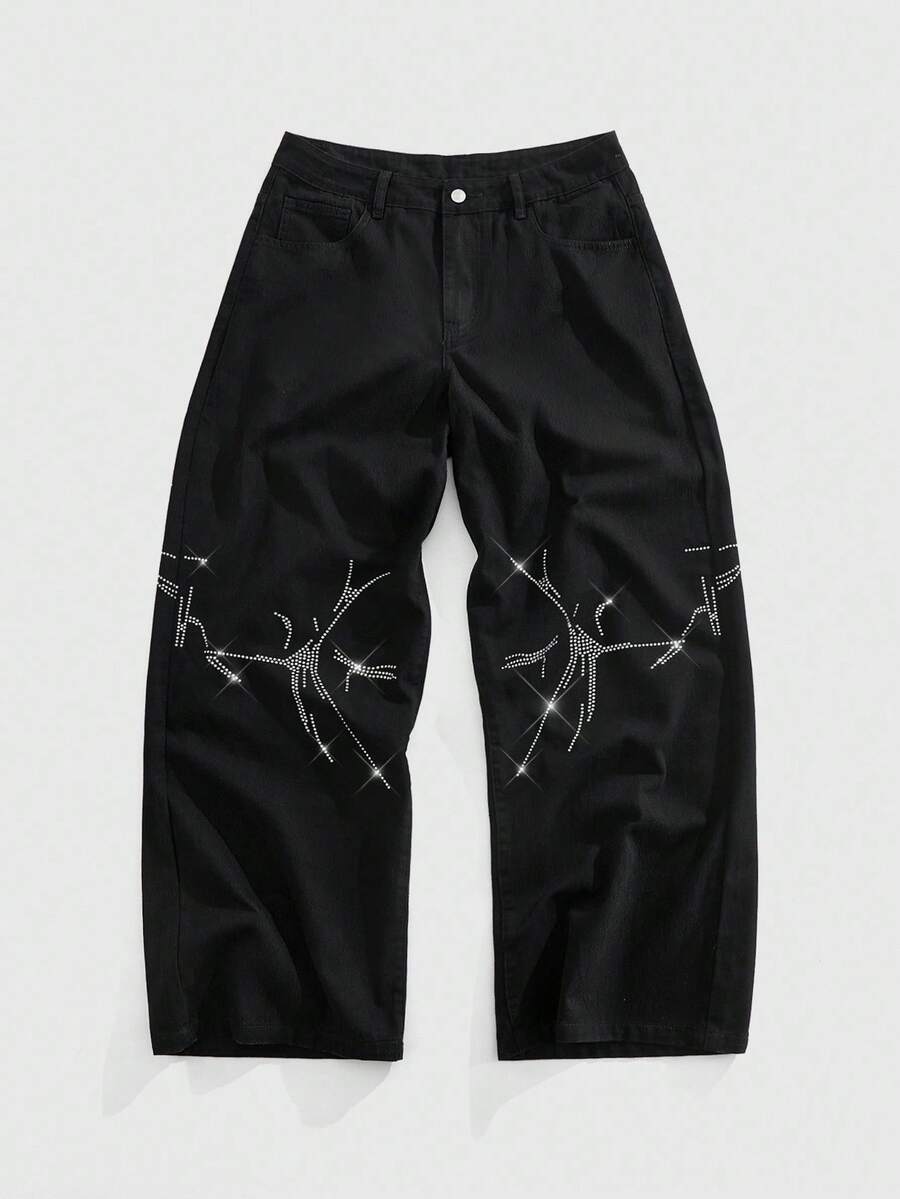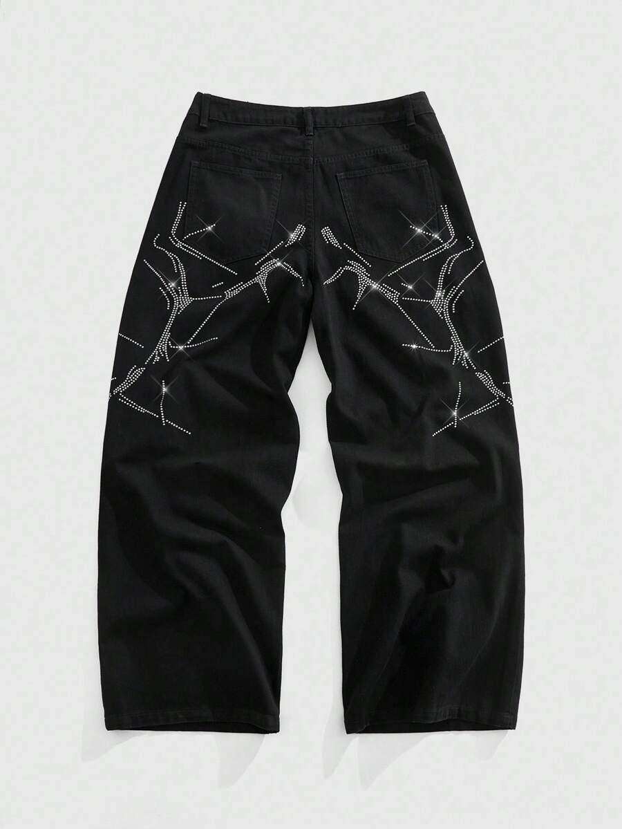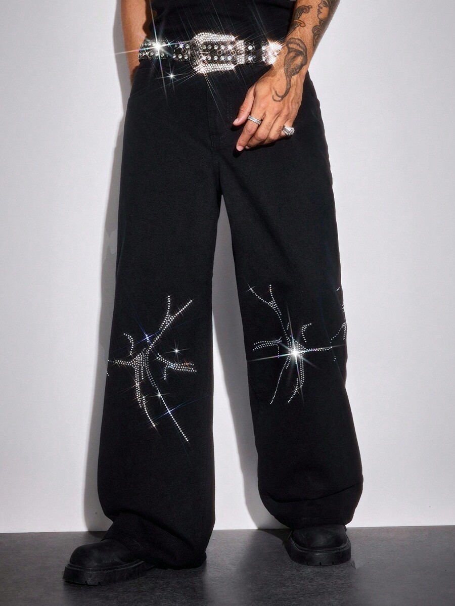 Street Life Jeans casuales anchos con bolsillo con adornos de rhinestone para hombres, estilo grunge