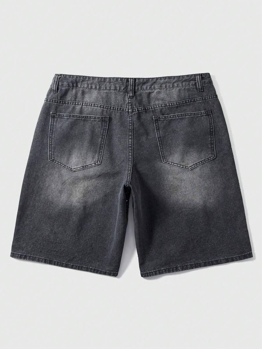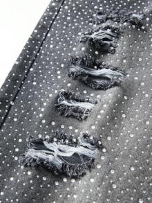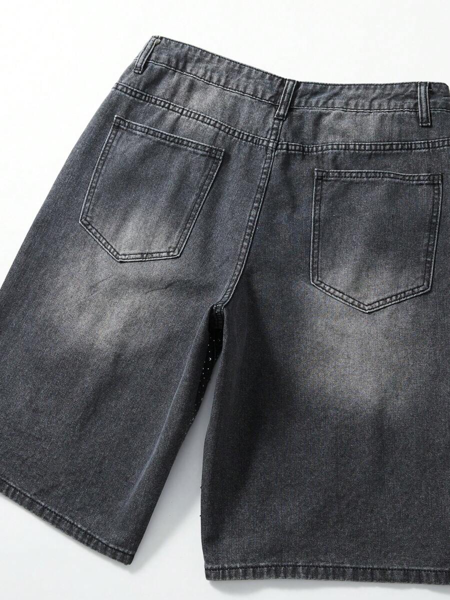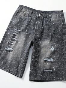 Street Life Pantalones cortos vaqueros casuales con bolsillo con estampado de rhinestones para hombres