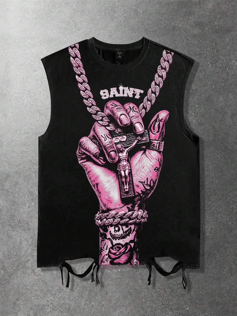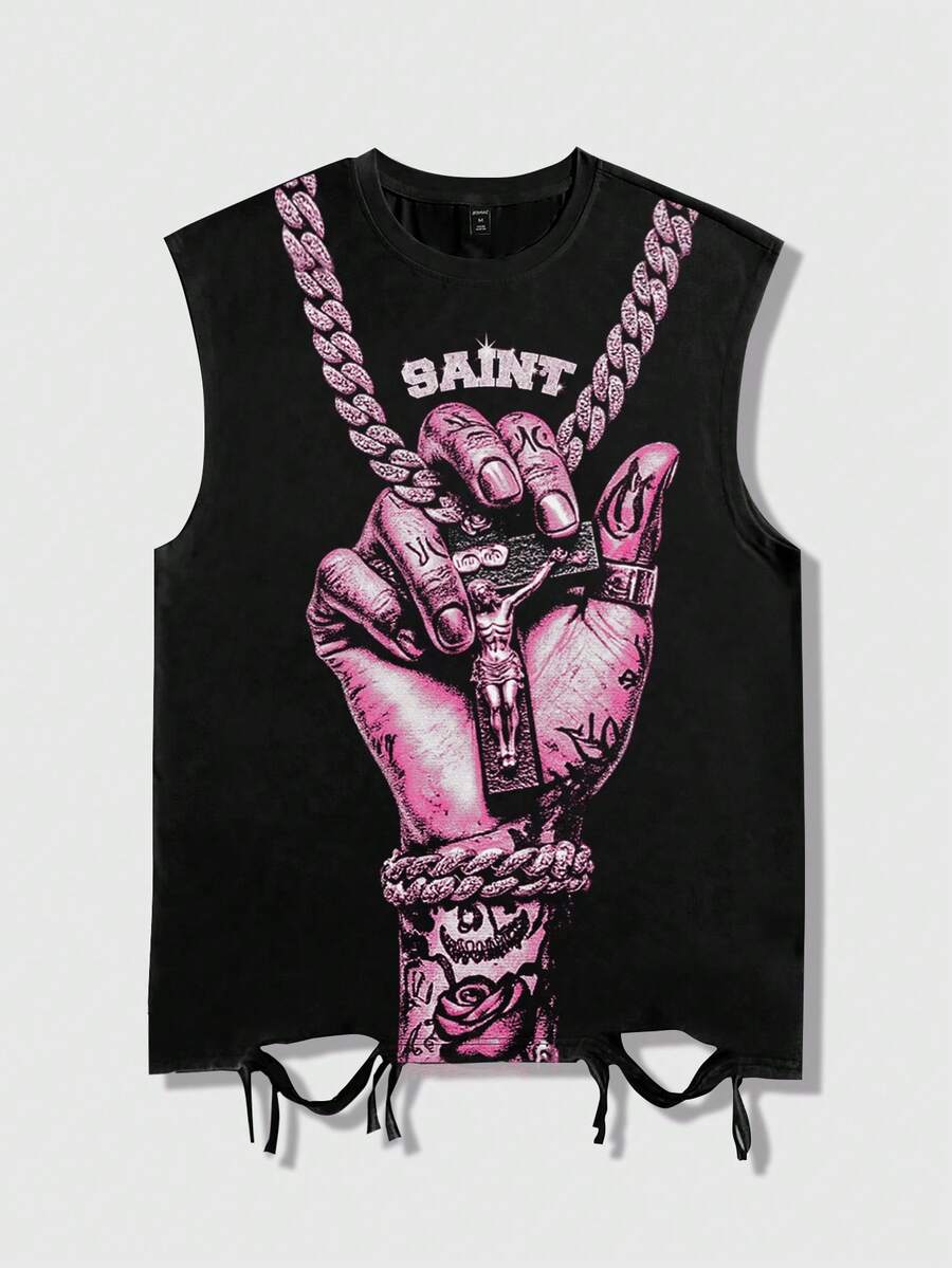 Street Life Camiseta de tirantes casual y versátil para hombres con cuello redondo, estampado de letras y palmas