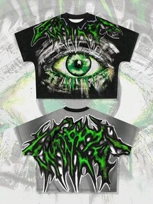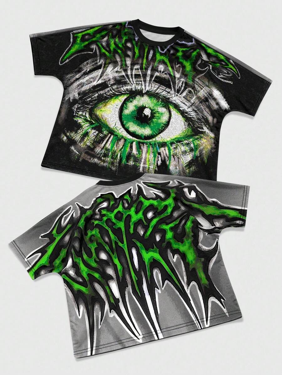 Street Life Camiseta casual de manga corta y cuello redondo para hombre con estampado creativo de ojos, para verano