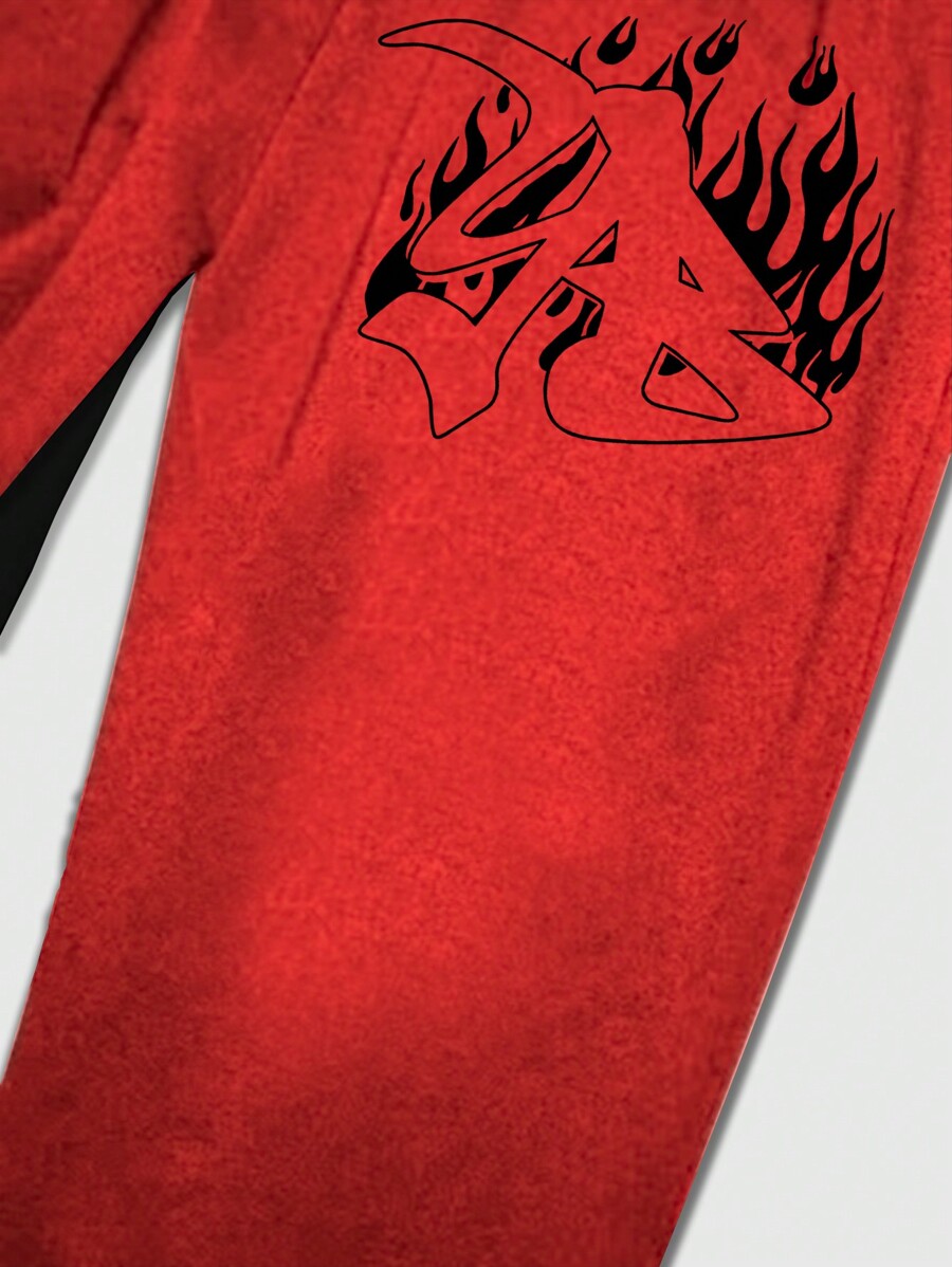 Street Life Conjunto informal de top de manga corta de cuello redondo con estampado de figura y pantalones para hombre