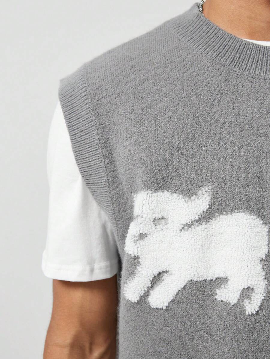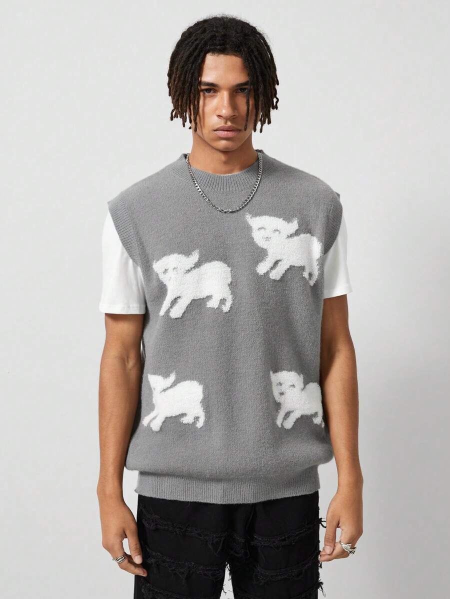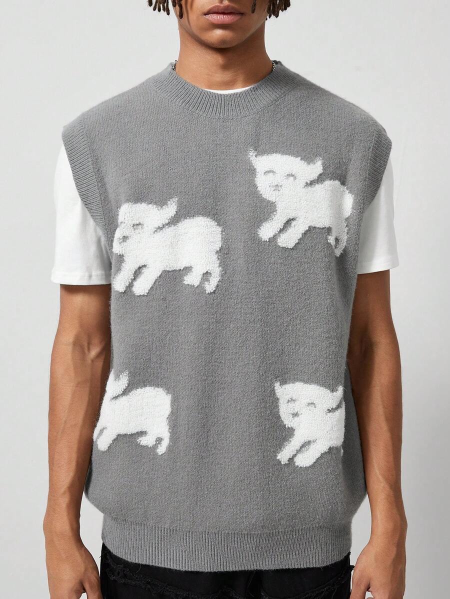 Street Life Chaleco de punto holgado, cómodo y casual diario de cuello redondo sin mangas, para hombre, escuela