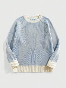 Casual Jersey de punto de cuello redondo a rayas para hombre, moda callejera, otoño e invierno