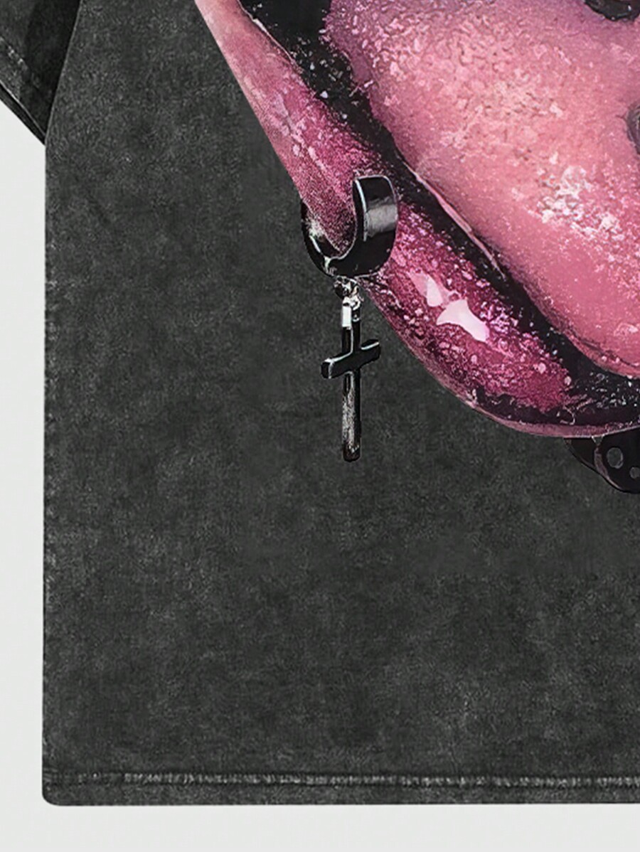 Street Life Sudadera de cuello redondo de manga corta con estampado de labios sencilla y diaria para hombres